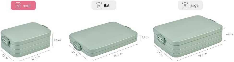 Cutia de prânz midi Take a Break pe scurt: robustă, etanșă, cu închidere practică cu clemă și un separator. Cutia de prânz Mepal Take a Break poate fi folosită pentru a transporta în siguranță sandvișuri și alte gustări. Separatorul flexibil și complet detașabil previne alunecarea sandvișurilor și ajută la separarea conținutului. Acest lucru facilitează transportul propriilor gustări și mese la serviciu, școală sau pur și simplu în deplasare! Cutia de prânz Mepal Take a Break are un capac complet detașabil, cu un inel de etanșare integrat pe toate părțile. În combinație cu cele două cleme de închidere de pe laterale, alimentele rămân proaspete mai mult timp. Cutia de prânz este foarte robustă și poate fi curățată în mașina de spălat vase după utilizare. Cutia de prânz este disponibilă în diferite culori și dimensiuni.
