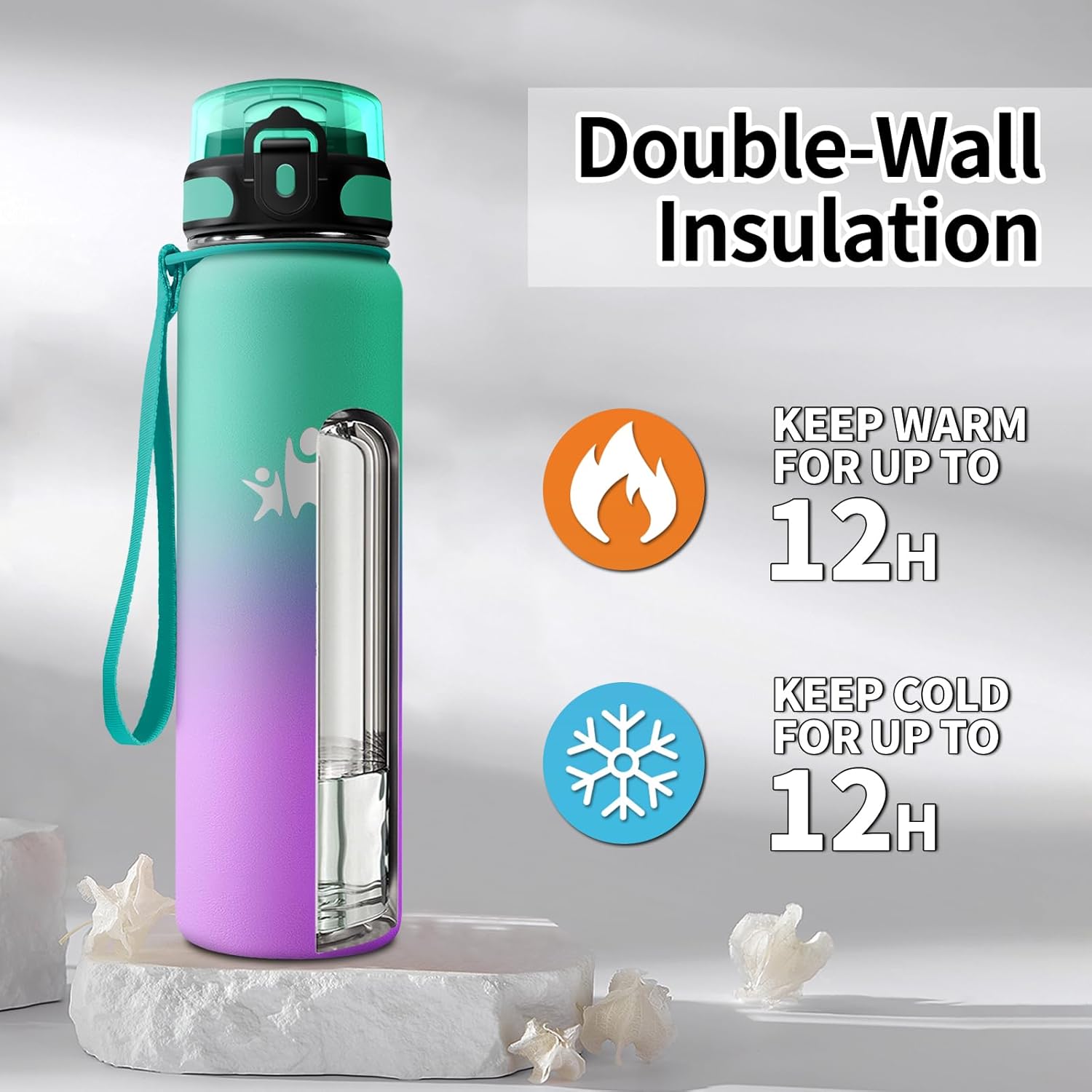 • Pai integrat și gura de băut din silicon alimentar pentru utilizare comodă, fără a răsturna sticla.