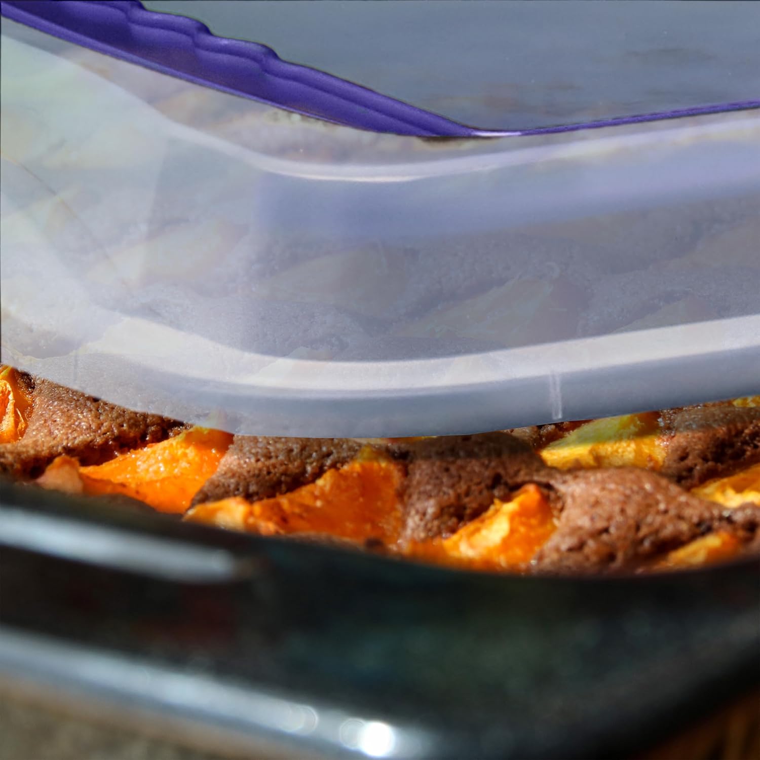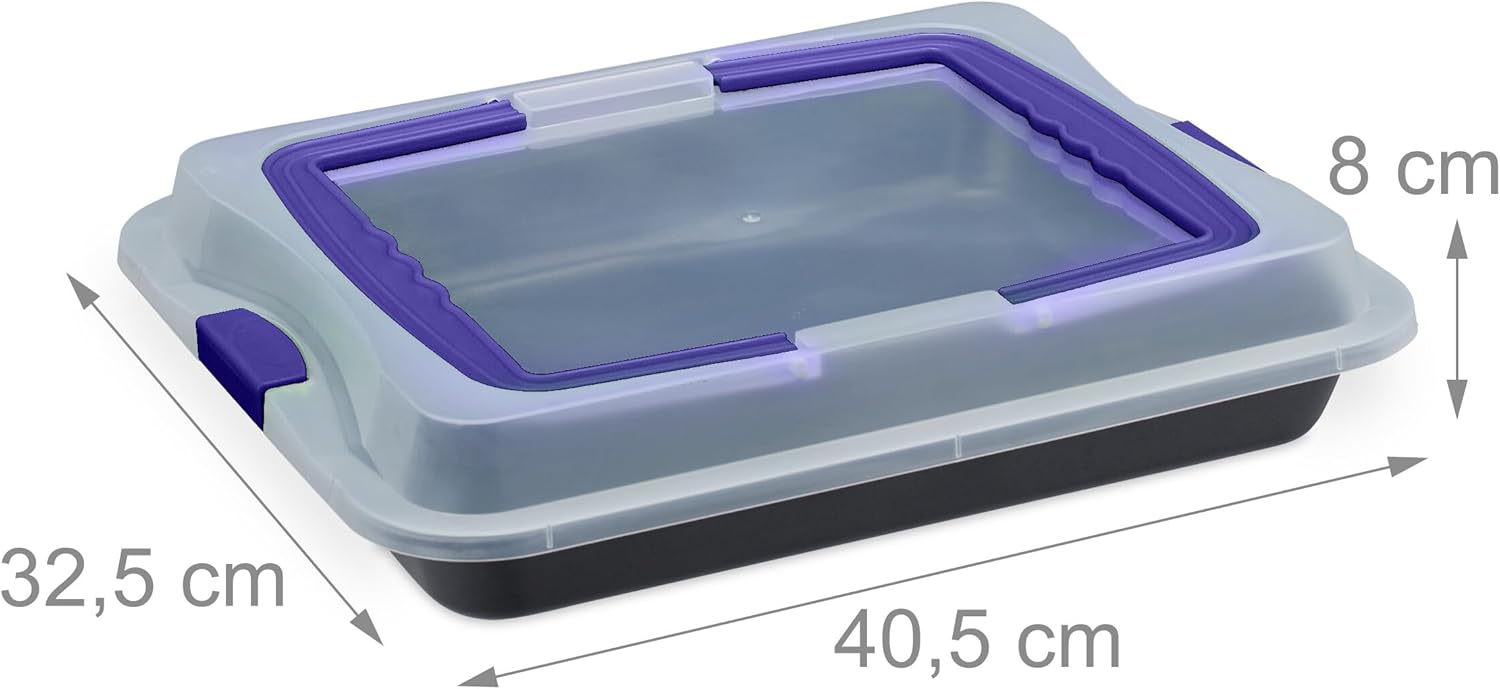Informații despre acest articol 3 în 1: Forma de tort este potrivită pentru coacere, depozitare și transport - Cu accente albastru închis Practică: Datorită celor 2 mânere de pe capac, cutia de tort poate fi transportată cu ușurință la următoarea petrecere Convenabilă: Preparați caserole, prăjituri și altele direct în forma de copt - Închideți capacul și luați-o cu dumneavoastră Ușor de întreținut: Tava de cuptor cu înveliș antiaderent și capacul de transport se spală ușor și rapid manual Detalii: Cutie de transport tort din oțel carbon de înaltă calitate - Dimensiuni H x L x A: aprox. 8 x 40,5 x 32,5 cm Mai multe detalii despre produs
