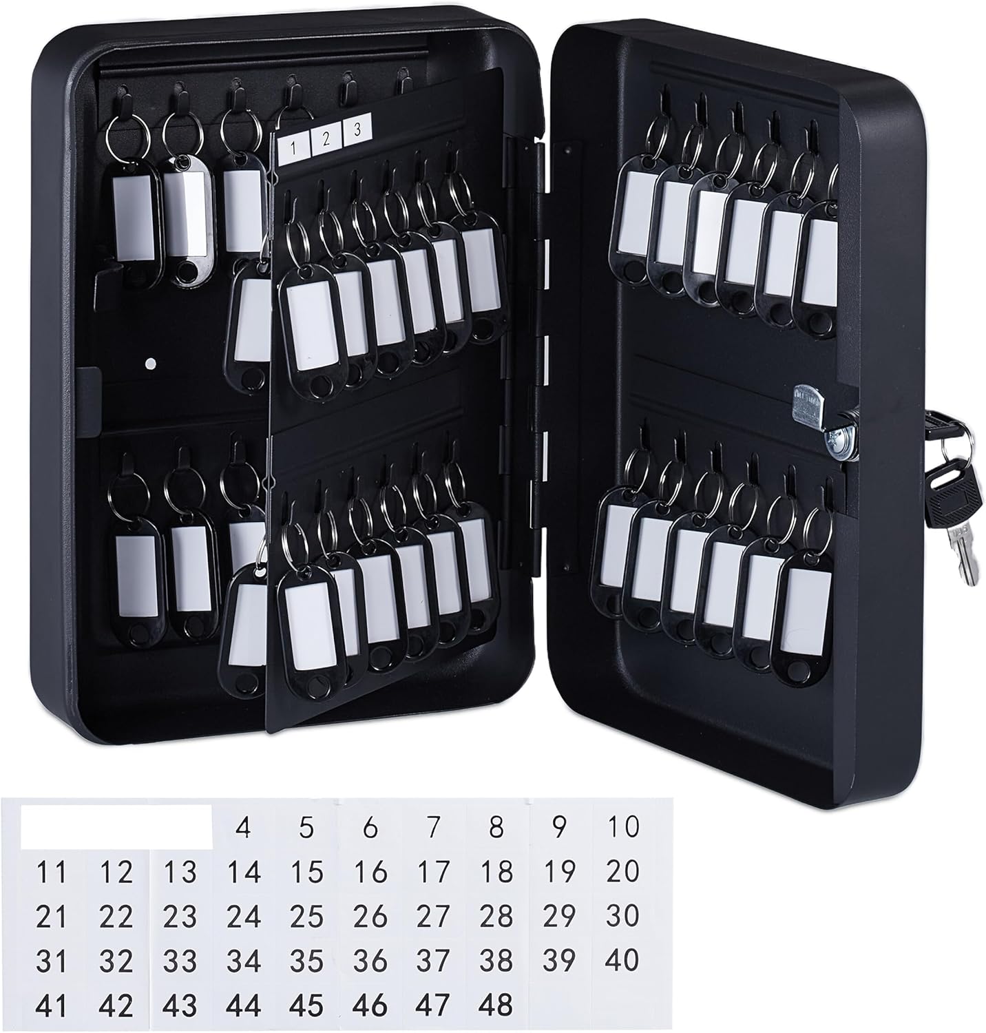 [RESIGILAT] Cutie chei Relaxdays, 48 carlige, neagra, 25x18x8 cm