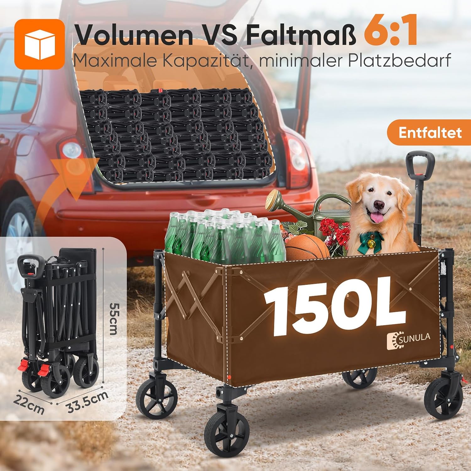 [RESIGILAT] Carucior pliabil manual 120KG roti teren 150L negru