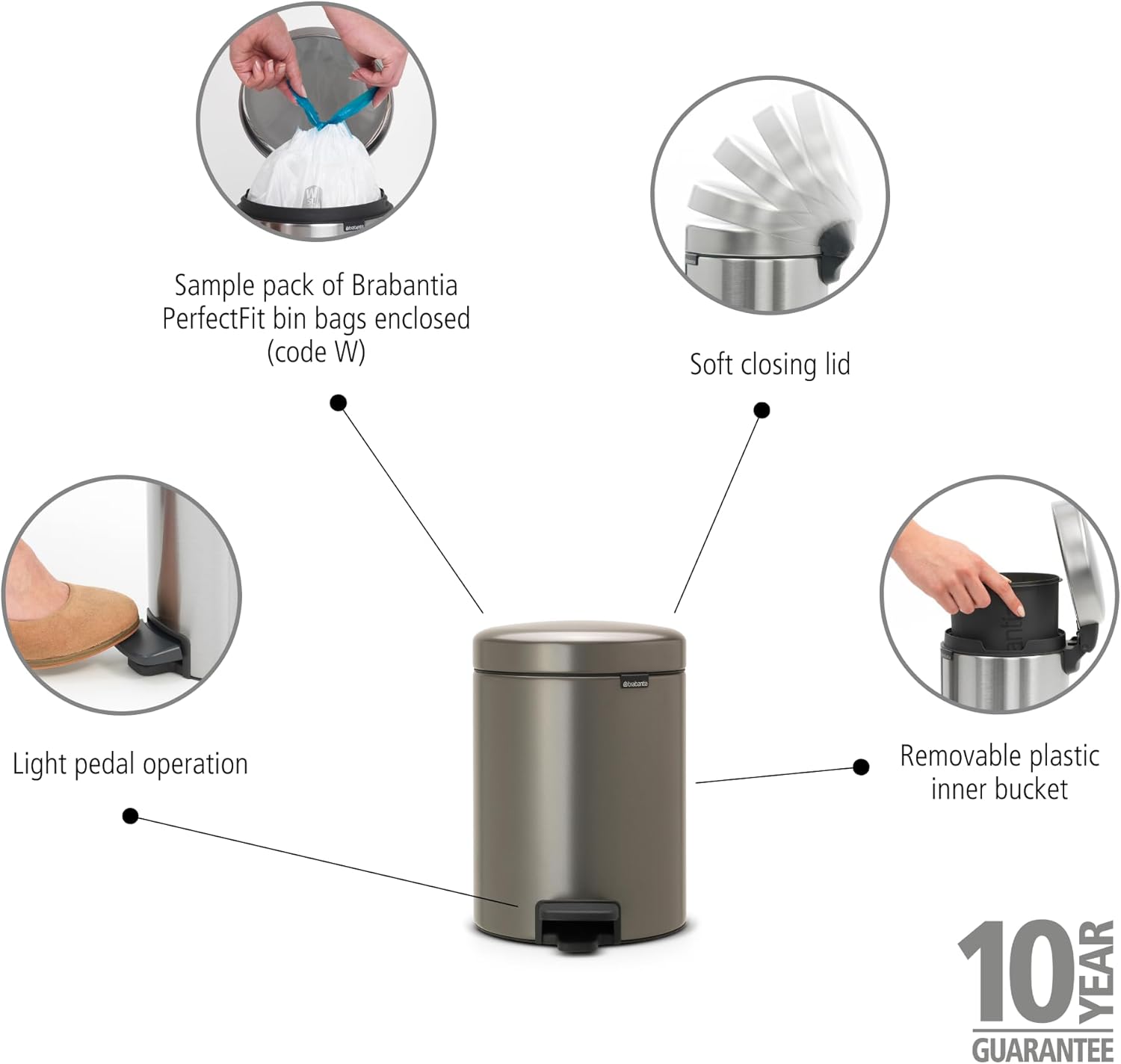 [RESIGILAT] Cos pedal Brabantia 5L plastic otel Platinum