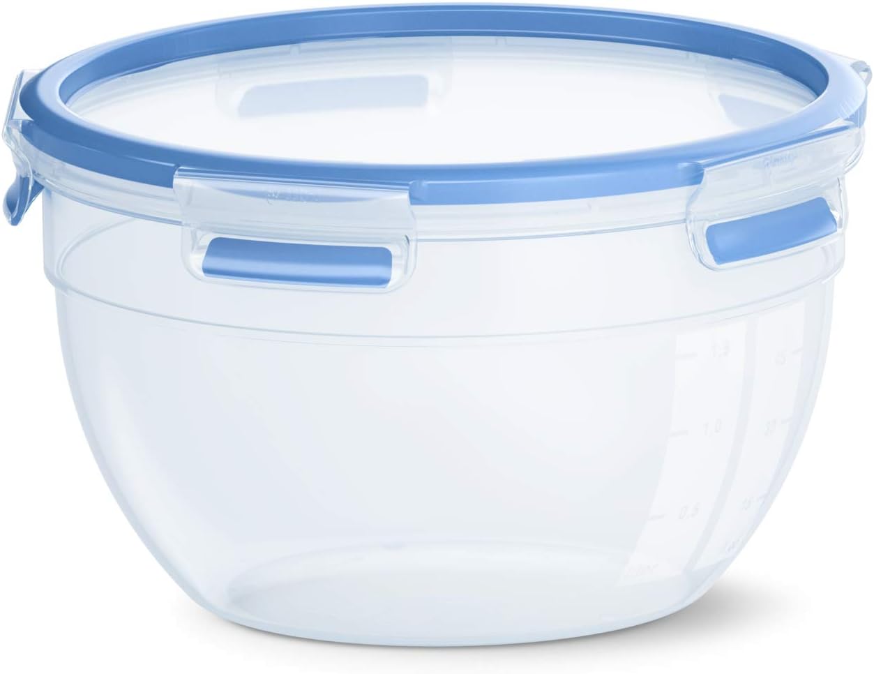Despre acest articol: Prospețime mai lungă acasă: recipient de depozitare a alimentelor cu capac; etanșare unică pentru prospețime fără goluri pentru depozitare fără germeni. 100% rezistent la scurgeri: ideal pentru transportul alimentelor lichide și absolut inodor datorită tehnologiei de etanșare; dimensiune la îndemână pentru pauzele de masă. Absolut inofensiv: 100% fără BPA și alte substanțe nocive; primul producător certificat de recipiente pentru alimente pentru copii, în conformitate cu standardul Baby Care. Practic: Cu scală de măsurare, stivuibil în siguranță și reutilizabil; recipientul este potrivit pentru frigider, congelator, cuptor cu microunde și mașină de spălat vase. Pachetul de livrare: Recipient rotund Emsa N1011400 Clip & Close pentru păstrarea alimentelor, 2,6 litri. Alte detalii despre produs.