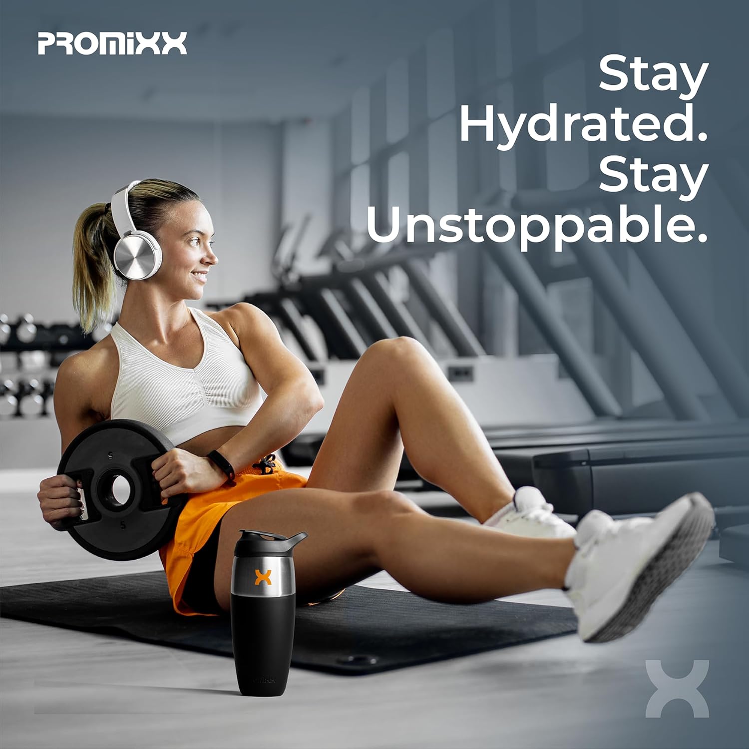 Sticlă Shaker pentru Proteine ​​de 913 ml - Cana Shaker din Oțel Inoxidabil Anti-Scurgeri și Fără BPA, cu Agitator cu Fixare în Snap pentru Amestecare Fină - Fără Miros, Ușor de Curățat - Sticlă Shaker pentru Blender, Pre-Antrenament și Smoothie-uri • Actualizare Brand: Este posibil să primiți un produs cu o marcă actualizată. Acesta este încă un articol PROMiXX original. Pentru orice întrebări, vă rugăm să ne contactați • CAPACITATE MAI MARE DE 913 ml – MAI PUȚINE REUMPLERI – Rămâi alimentat cu o cană shaker din oțel inoxidabil supradimensionată de 913 ml, perfectă pentru amestecarea shake-urilor proteice, pre-antrenament, smoothie-uri sau hidratare. Mai mare decât sticlele standard de 713 ml, ideală pentru zilele de antrenament intens. • DESIGN ETANȘ – FĂRĂ SCURGERI ÎN GEANTĂ – Capacul cu filet și gura de scurgere cu fixare în Snap creează o etanșare sigură, menținând sticla de shake proteic 100% etanșă. Aruncați-o cu încredere în geanta de sală sau în rucsac. • FĂRĂ BPA ȘI REZISTENT LA MIROSURI – RĂMÂNE PROASPĂTĂ MAI LUNG – Spre deosebire de shakerele din plastic, această sticlă de proteine ​​din oțel inoxidabil rezistă petelor și mirosurilor, pentru o băutură mai curată și mai proaspătă de fiecare dată. Construcție sigură, fără BPA, pentru utilizare zilnică. • UȘOR DE CURĂȚAT – CONCEPUTĂ PENTRU UTILIZARE ZILNICĂ – Deschiderea largă face curățarea rapidă și simplă. Clătiți doar cu apă și săpun – fără mirosuri persistente sau piese dificile de frecat. Concepută pentru antrenamente zilnice, pregătirea meselor și călătorii.