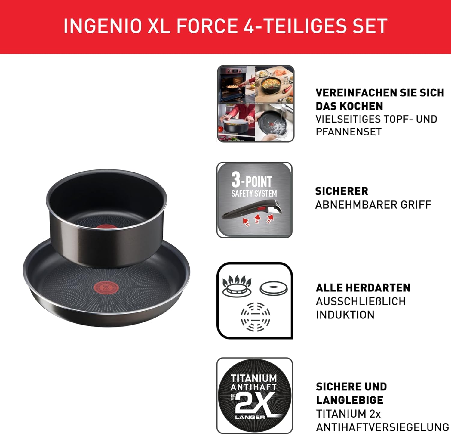 [RESIGILAT] Tefal Ingenio XL Force, set 4 cratite, 16/18/20 cm, antiaderent