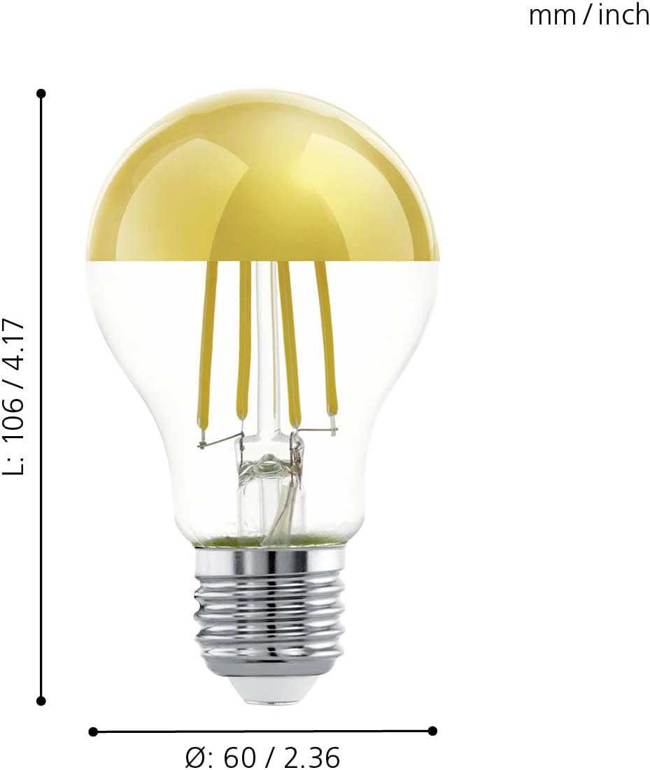 Informații despre acest articol Această bec LED cu filament înlocuiește becul incandescent tradițional de 60 W; Dimensiune: Lungime: 10,6 cm, Diametru: 6 cm. Partea superioară a becului, placată cu aur, asigură o lumină plăcută, fără strălucire – ideală, de exemplu, pentru lămpile suspendate sau pendulante cu deschidere în jos, deasupra mesei de luat masa. Datorită aspectului clasic transparent, cu design vintage antic, lampa LED E27 cu oglindă superioară este ideală ca sursă de lumină independentă. Sursa de lumină LED cu oglindă semisferică nu necesită timp de încălzire și emite imediat 100% lumină albă caldă și luminoasă la pornire; Culoarea plăcută și caldă a luminii este excelentă pentru încăperile în care vă relaxați, cum ar fi camera de zi și dormitorul. Prin utilizarea tehnologiei LED, puteți nu numai să economisiți energie și, prin urmare, costuri, ci și să protejați resurse valoroase și să evitați utilizarea de substanțe poluante precum mercurul. Mai multe detalii despre produs