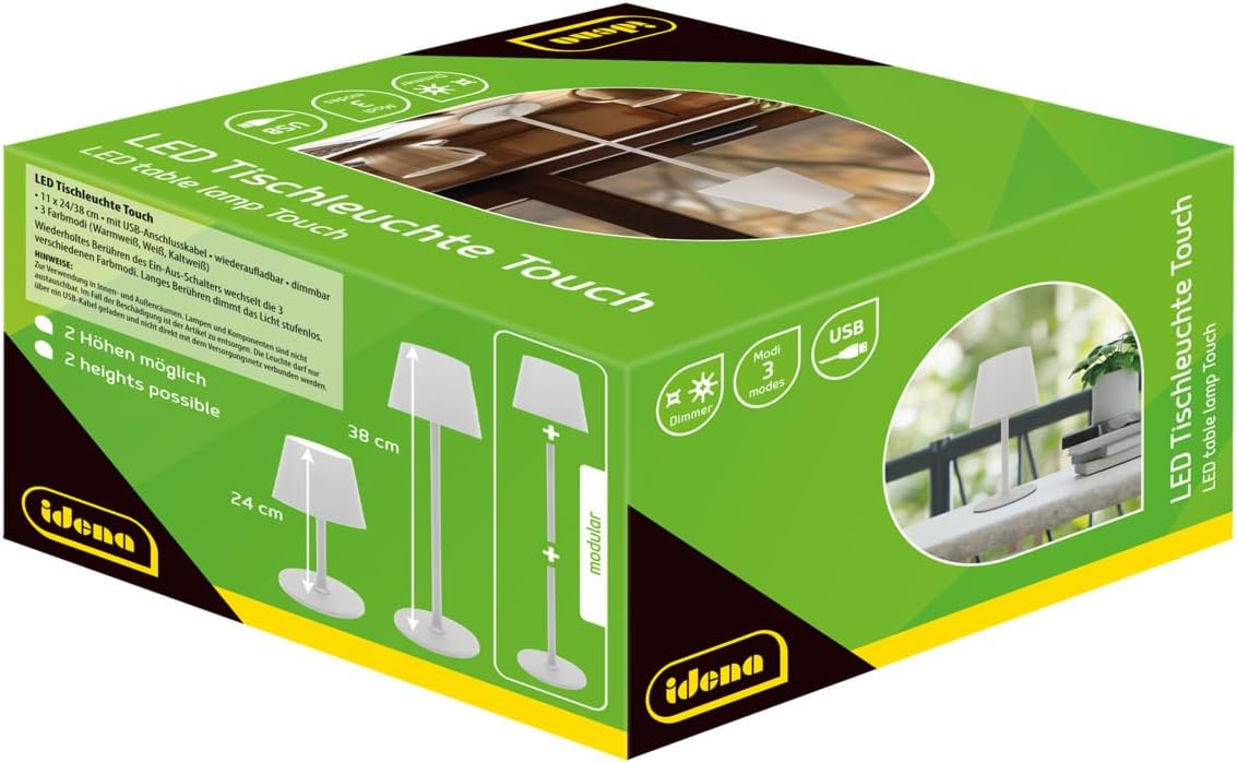 Această lampă de masă LED de la Idena este ideală ca o iluminare frumoasă și, în același timp, ca o decorațiune elegantă în camera dumneavoastră. Este reglabilă în înălțime de la 24 cm la 38 cm și este fabricată din metal alb rezistent. Lampa este echipată cu un senzor tactil, direct pe comutatorul pornit/oprit, și oferă trei moduri de intensitate a luminii reglabile printr-o simplă atingere, iar o atingere lungă vă permite să variați lumina. Lampa este alimentată de o baterie reîncărcabilă, care poate fi reîncărcată prin cablul USB. Lămpile LED oferă o durată lungă de viață și nu produc căldură. Puneți în scenă cu măiestrie felinarul LED Idena cu ideile dumneavoastră creative.