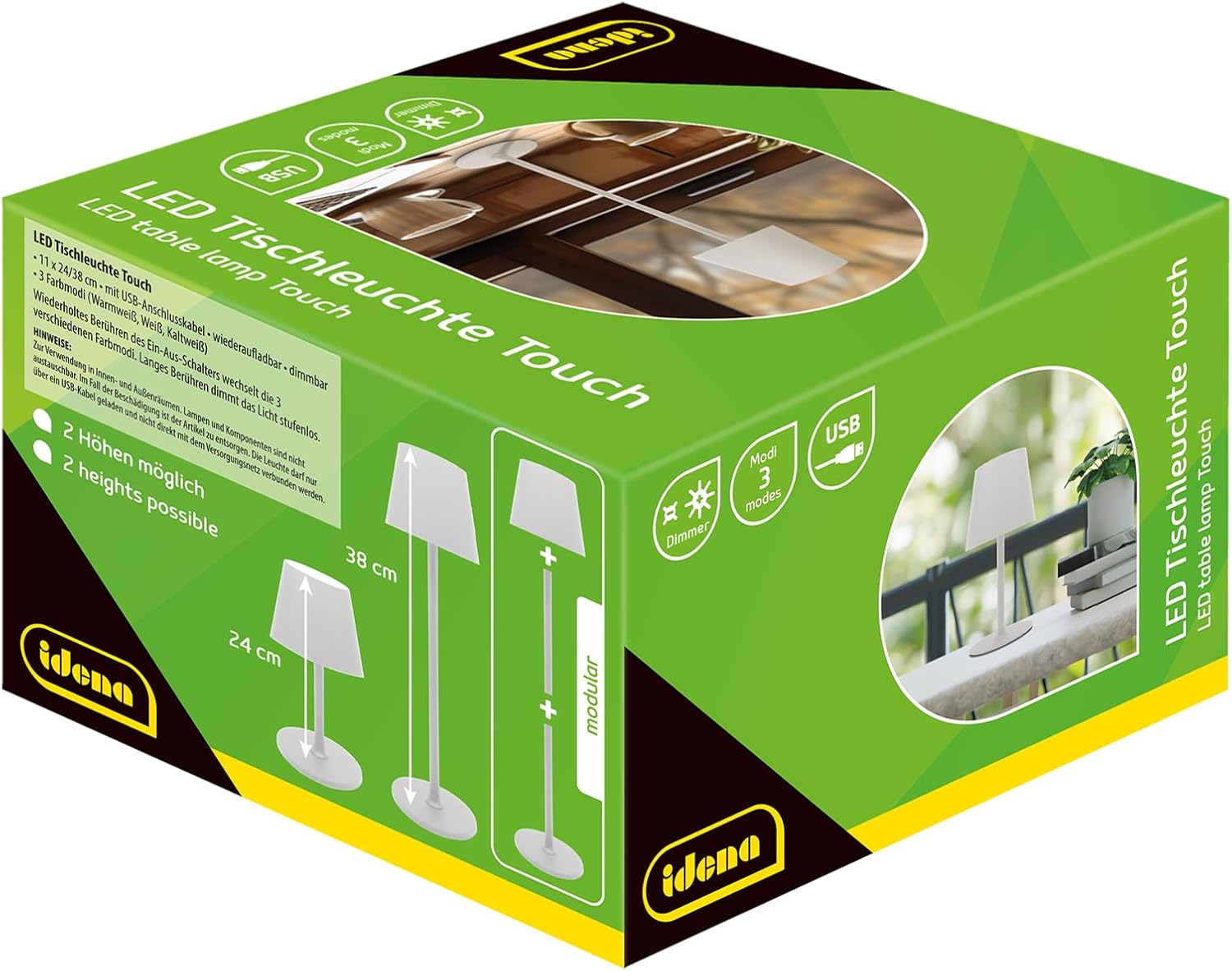 [RESIGILAT] Idena 50124, Lampa masa LED tactila, alba, reincarcabila