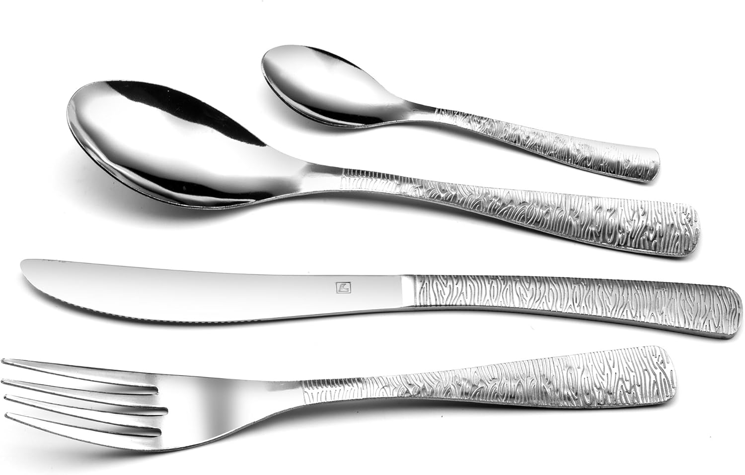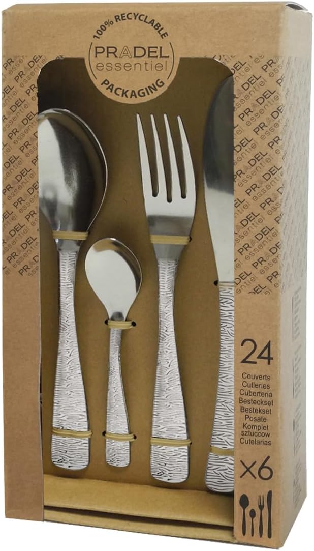 [RESIGILAT] Set tacâmuri Amefa Ethnic, 24 piese, din inox, decor martelat, gri – pentru 6 persoane
