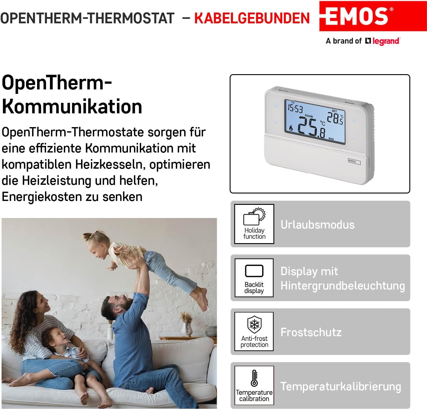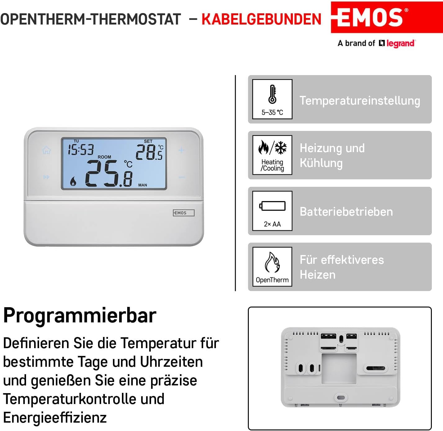 [RESIGILAT] Emos Termostat digital OpenTherm, programabil, alb, 12,6 x 8,4 cm