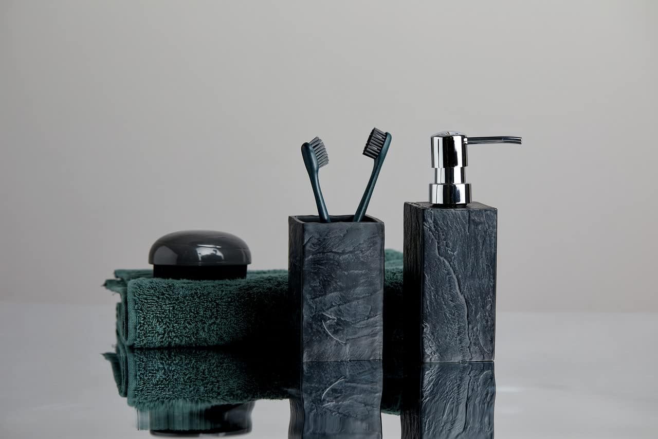 Despre acest articol Dozator de săpun reîncărcabil pentru distribuirea porționată de săpun lichid sau loțiune Ideal pentru baie, bucătărie și toaletă de oaspeți Fabricat din polirășină de înaltă calitate cu aspect de ardezie combinat cu crom Volum de umplere aprox. 250 ml Dimensiuni (L x Î x A): 8,2 x 17 x 5,9 cm Mai multe detalii despre produs