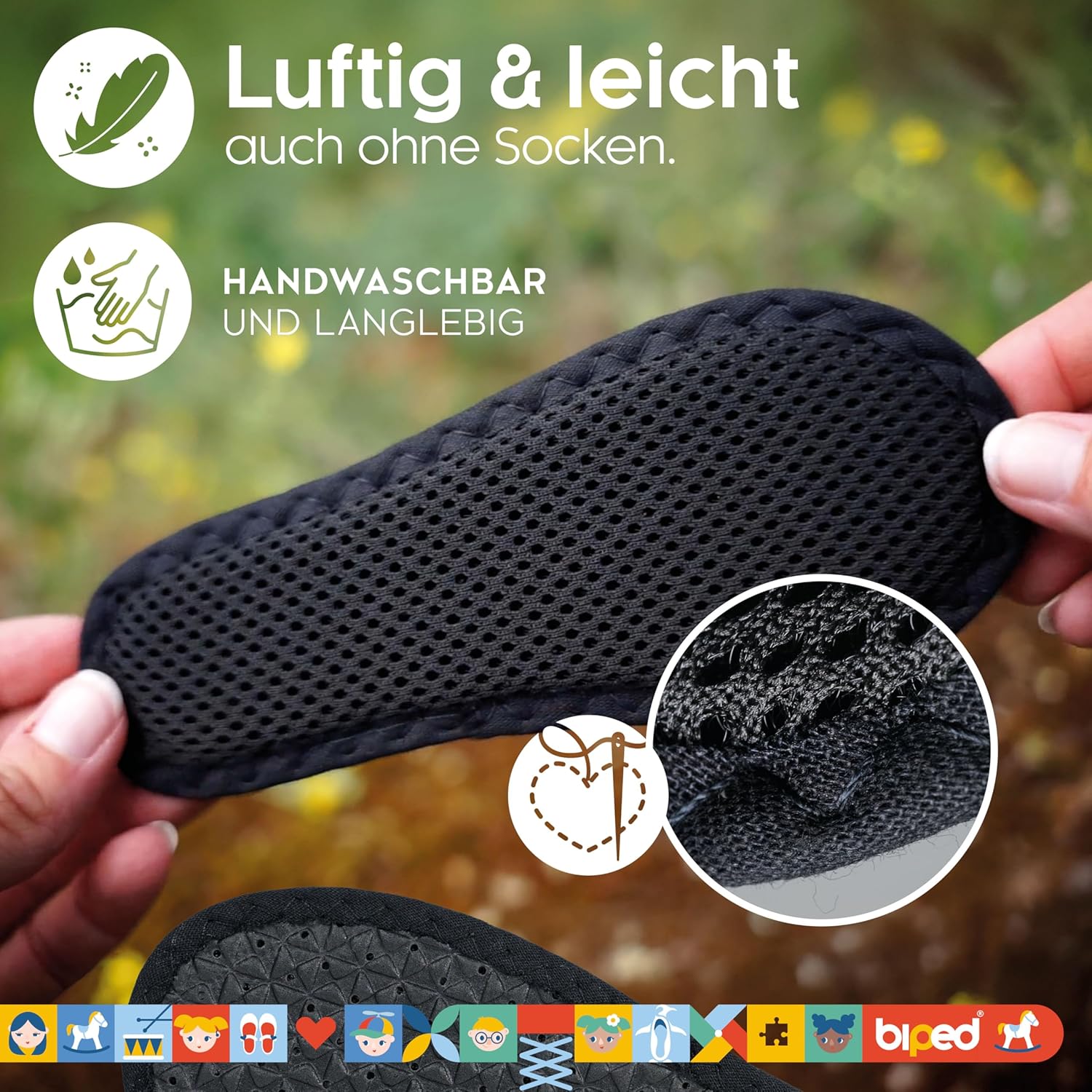 Controlul mirosului: Echipate cu un strat de cărbune activ, aceste branțuri pentru copii neutralizează mirosurile neplăcute ale picioarelor și asigură o senzație proaspătă de purtare pe tot parcursul zilei. Respirabil și igienic: Datorită cărbunelui activ integrat, tălpile elimină eficient transpirația, ceea ce asigură un climat uscat în pantof. Ideal și pentru purtarea desculță. Durabil și robust: Marginea cusută protejează aceste branțuri confortabile de destrămare și asigură o durabilitate suplimentară – perfecte și pentru cizme de cauciuc și papuci de casă. Îngrijire ușoară: Tălpile proaspete sunt ușor de curățat și, prin urmare, sunt ideale pentru utilizarea zilnică. Pur și simplu scoateți-le din pantofi și aerisiți-le - lavabile la nevoie. Fabricat în UE: Prin achiziția dumneavoastră, susțineți calitatea europeană și condițiile de muncă echitabile. Branțurile noastre sunt fabricate cu grijă și multă dragoste manual.