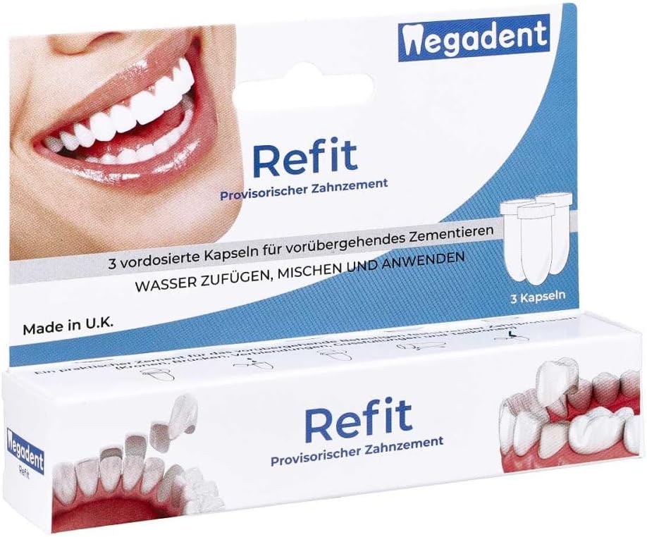 Refit este ideal pentru fixarea protezelor dentare dislocate, cum ar fi punțile, coroanele, fațetele, obturațiile turnate sau coroanele parțiale.