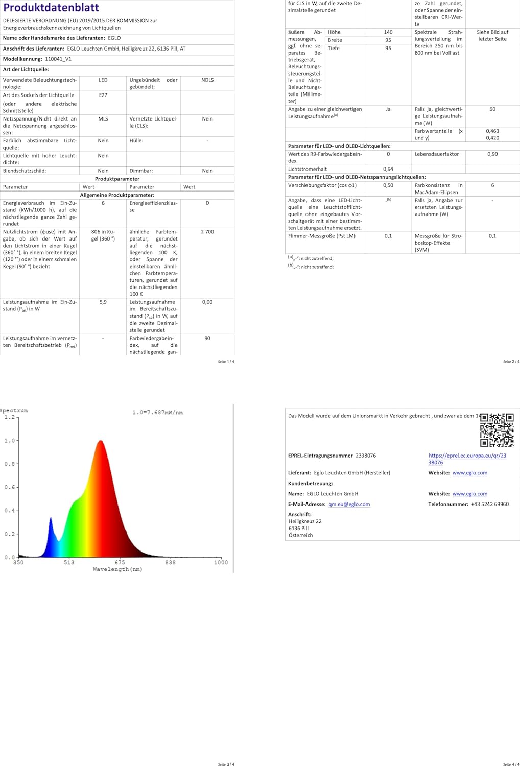 [RESIGILAT] EGLO E27 LED Lampa, 7 W, 806 lumeni, Alb Cald, G95, O 9,5 cm