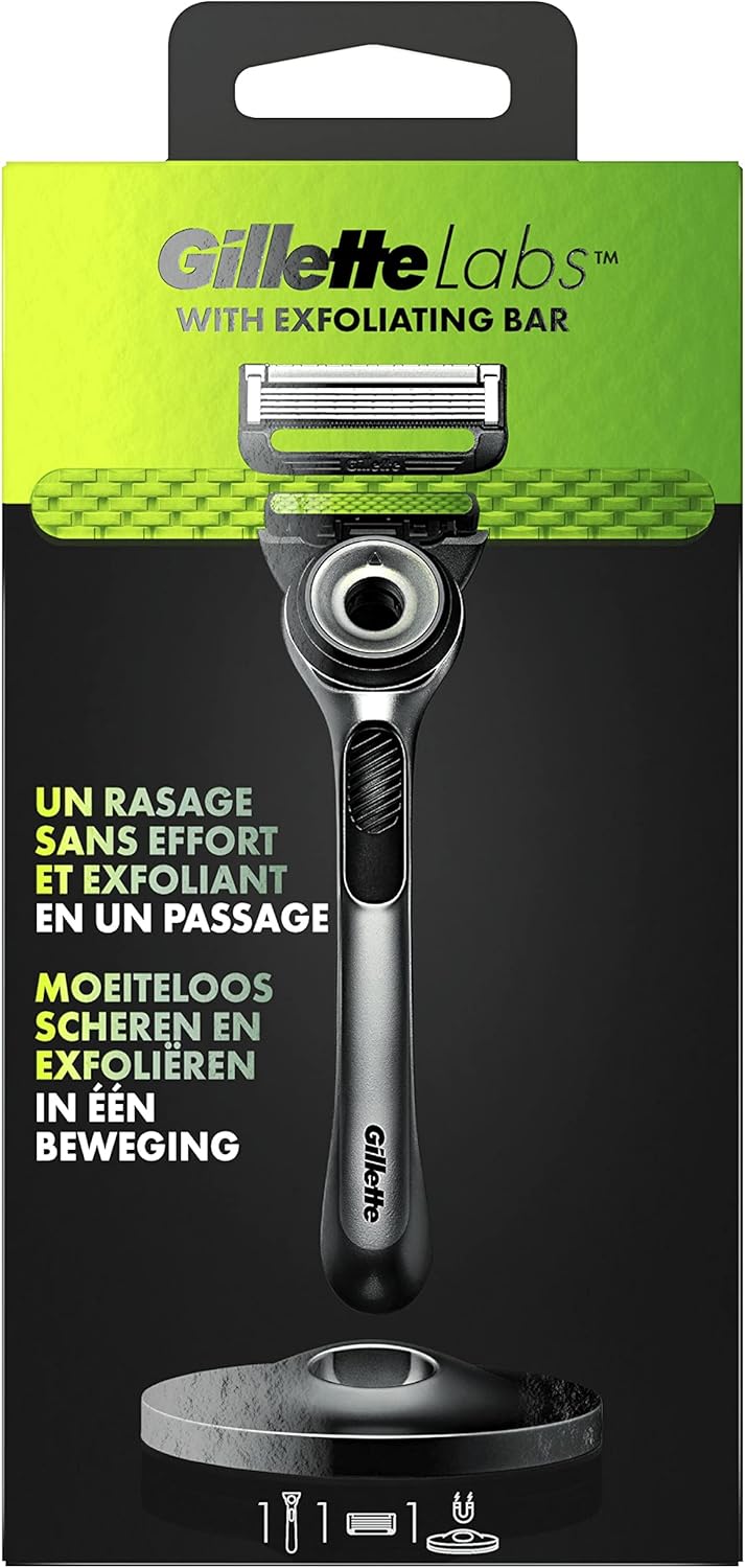 Descriere produs: Aparat de ras GilletteLabs pentru bărbați: pentru un bărbierit fără efort și o exfoliere a pielii într-o singură mișcare. Cu bară de exfoliere - bara de exfoliere integrată curăță pielea înainte de trecerea lamelor. Confort incredibil și un bărbierit profund - acest aparat de ras pentru bărbați are cele mai bune lame Gillette (primele 4 lame). Design puternic: FlexDisc 2D se adaptează contururilor feței pentru un contact plăcut la fiecare trecere. Durată lungă de viață: Mânerul aparatului de ras are o garanție pe viață. Pentru mai multe informații, vizitați gillette.fr/gillette-labs/garantie.