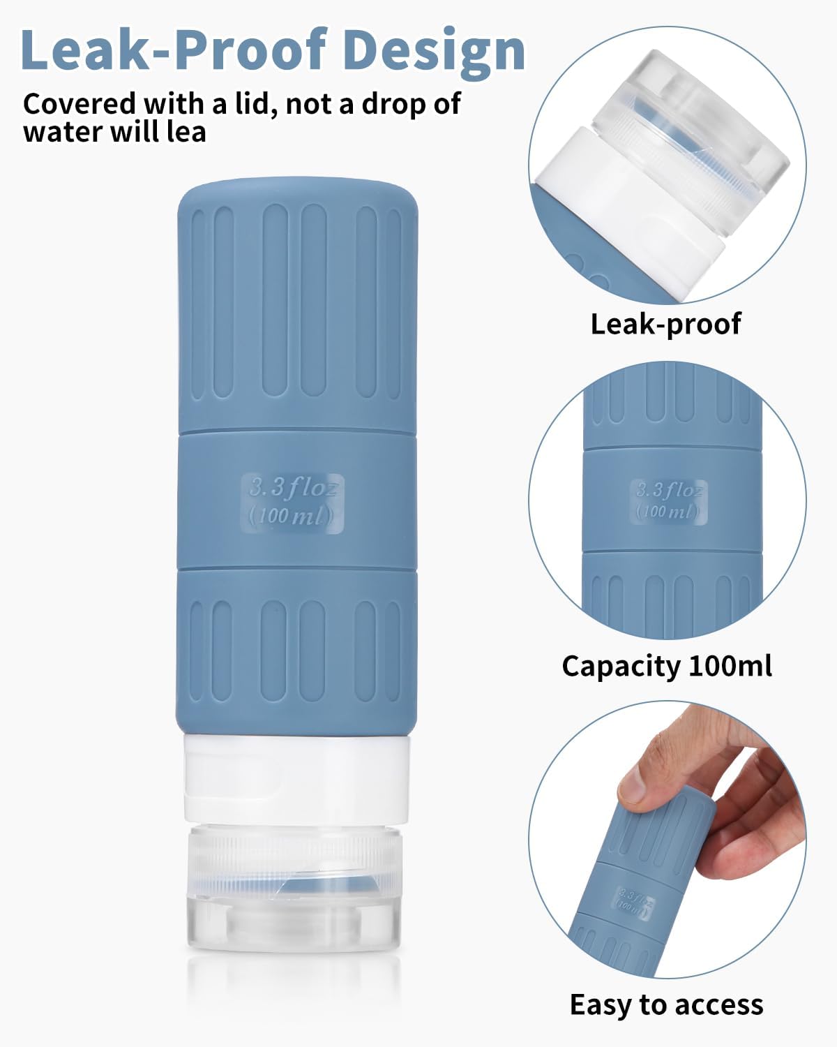 Pregătește-ți bagajele cu stil și eficiență cu setul complet de sticle de călătorie din silicon, perfect pentru toate nevoile tale de igienă și îngrijire personală în deplasare. Compact, sigur și ecologic, acest set îți oferă libertatea de a călători ușor, organizat și fără griji.