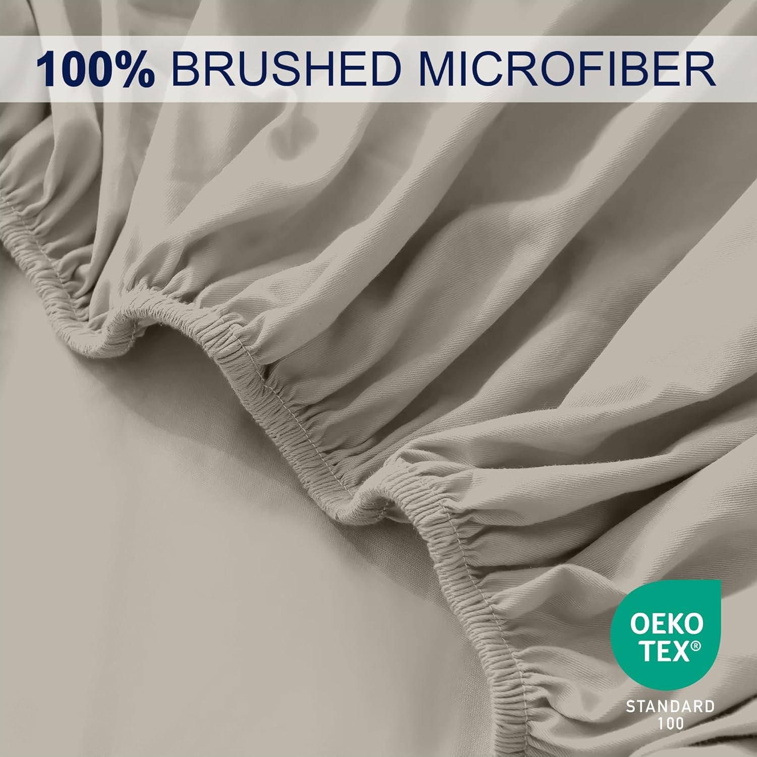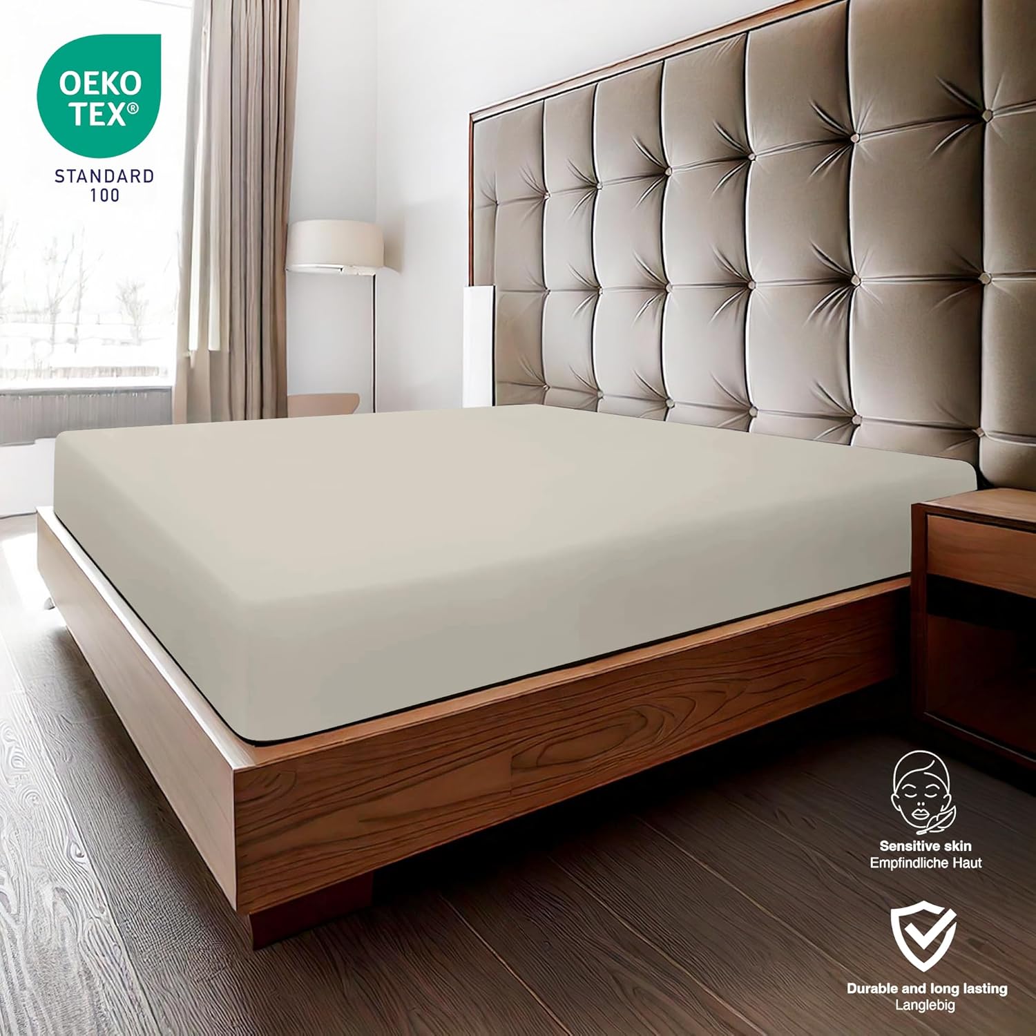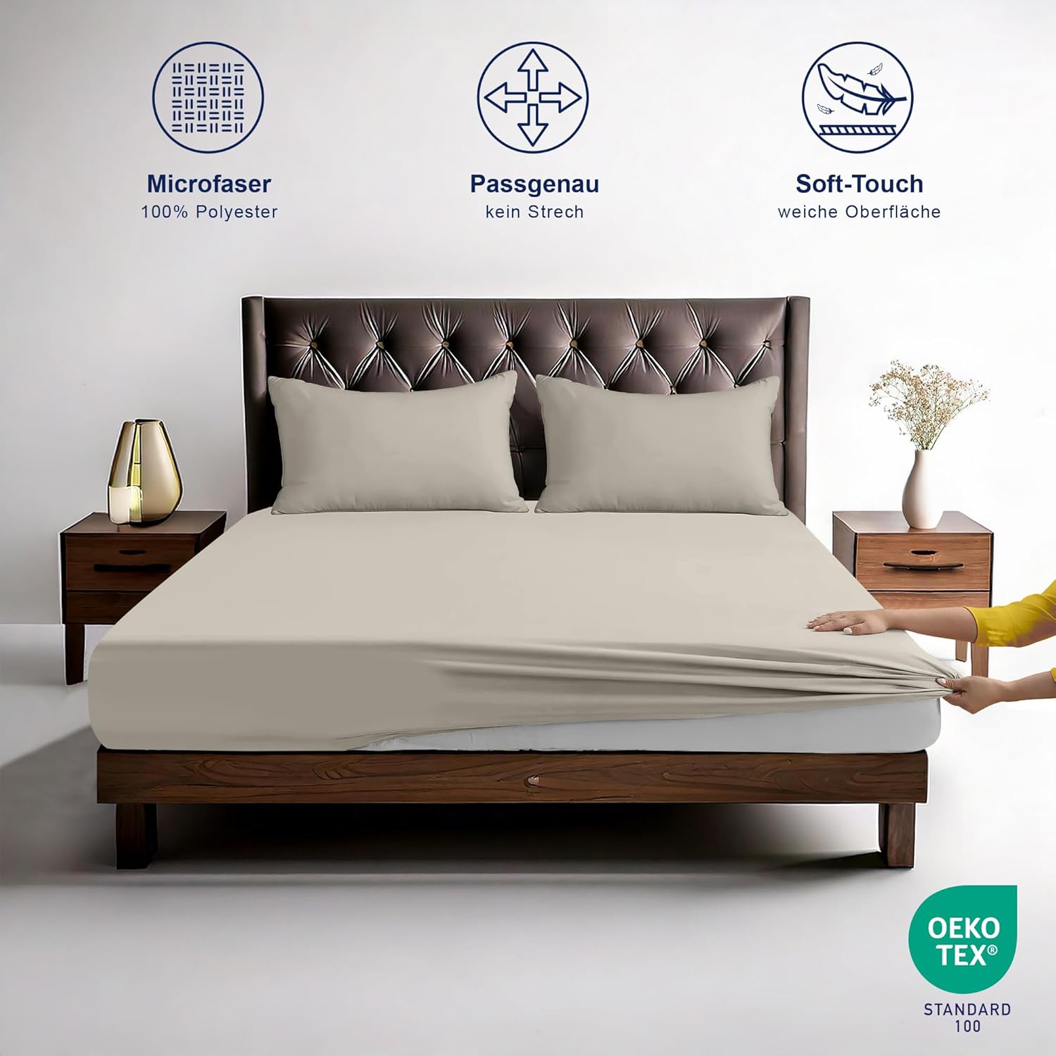 [RESIGILAT] Cearșaf de pat BARBONS 180x200 cm, microfibră periată, culoare nisip, elastic 360°