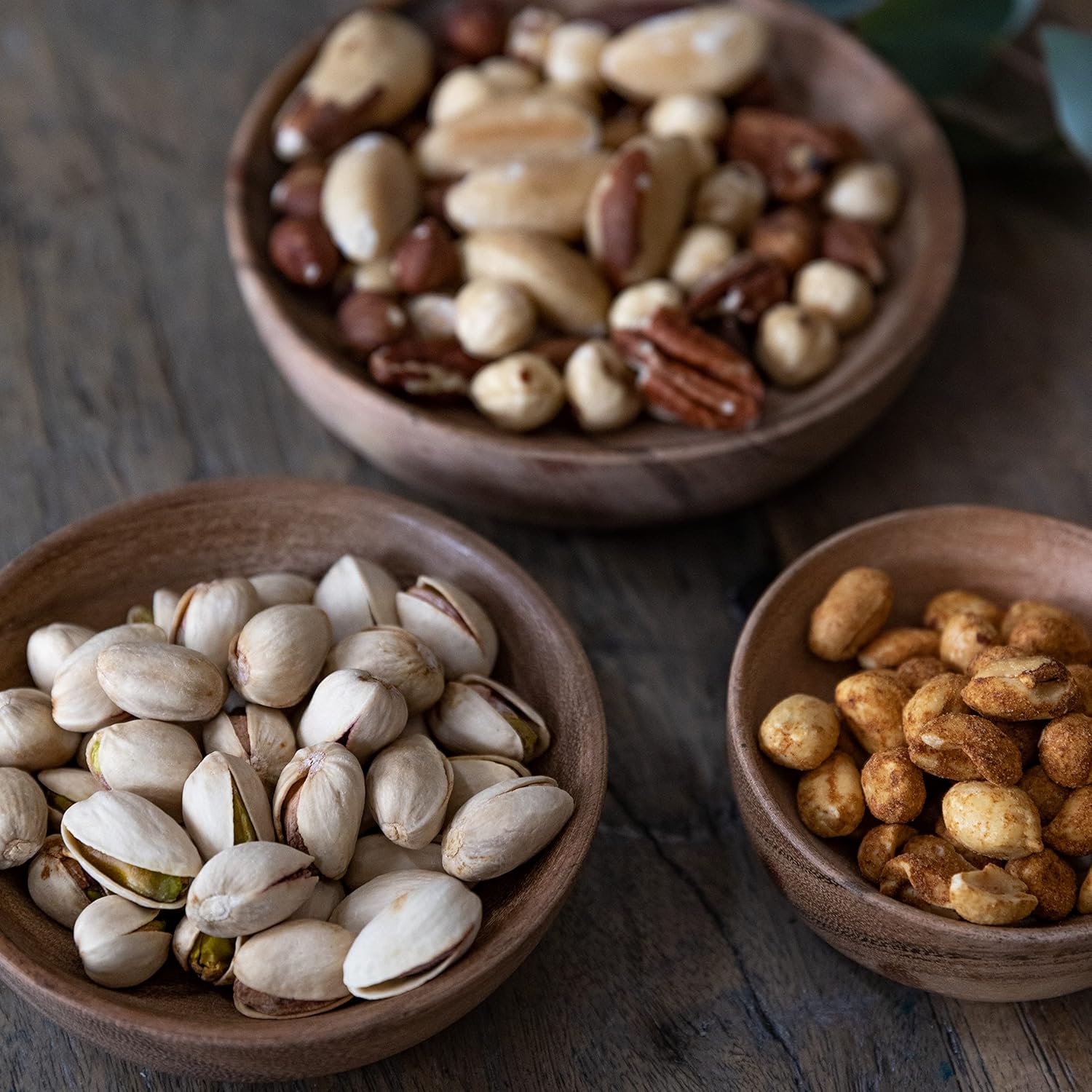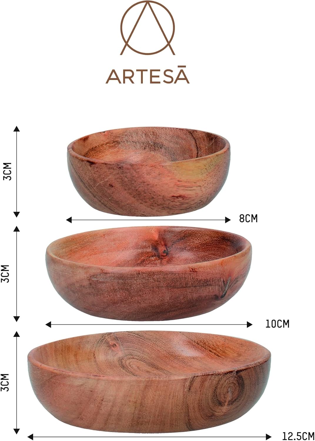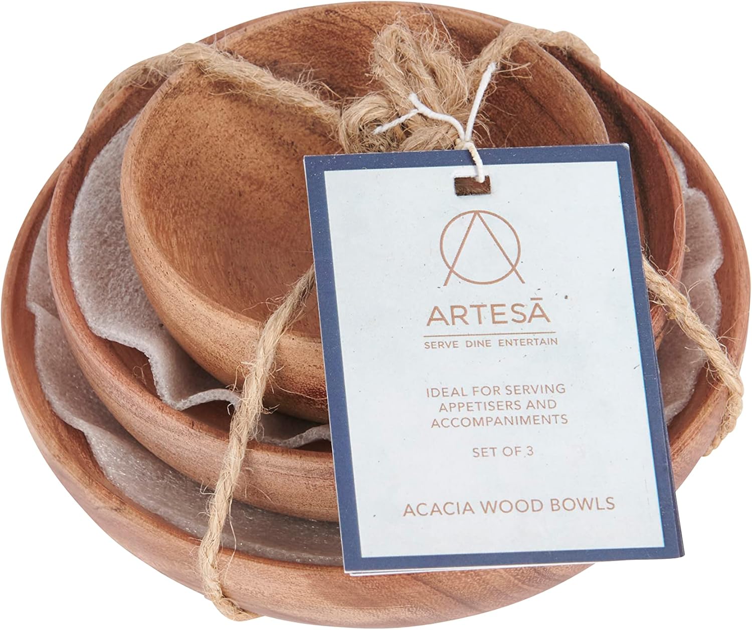 Despre acest articol Aduceti frumusețea naturii pe masa dumneavoastră cu aceste boluri din lemn Creative Tops Folosiți-le pentru a servi gustări și sosuri la petreceri - sunt sigure pentru alimente. Sau lăsați-le neocupate pentru decorarea casei Acest set conține 3 boluri din lemn cu dimensiunile de 12,4 cm (5"), 10,2 cm (4") și 8 cm (3"). Fiecare bol are o adâncime de 2 cm Fabricate din lemn de acacia, aceste boluri prezintă granule frumoase, neobstrucționate, care le fac o piesă remarcabilă pentru mesele de cină Faceți din frumusețea naturii punctul central al casei dumneavoastră cu colecția Naturals de la Creative Tops Mai multe detalii despre produs
