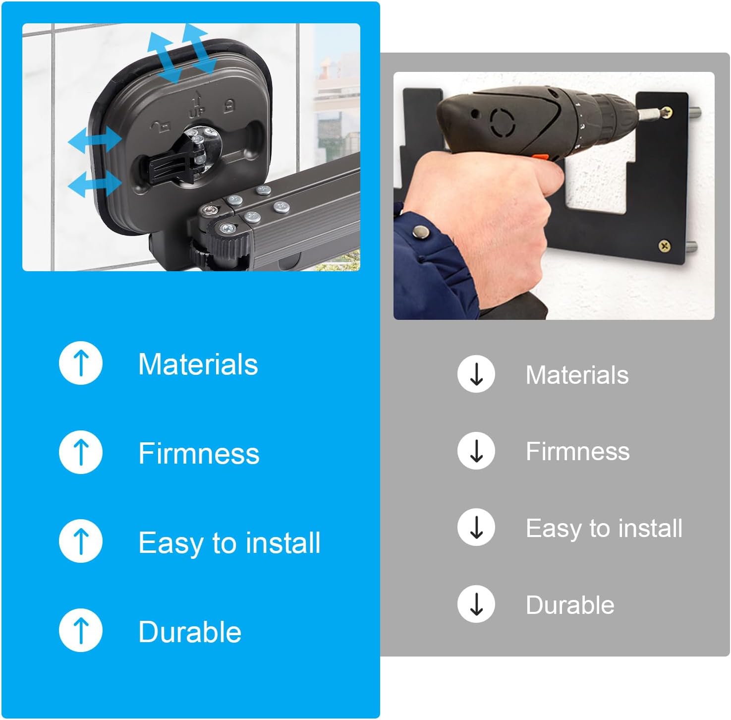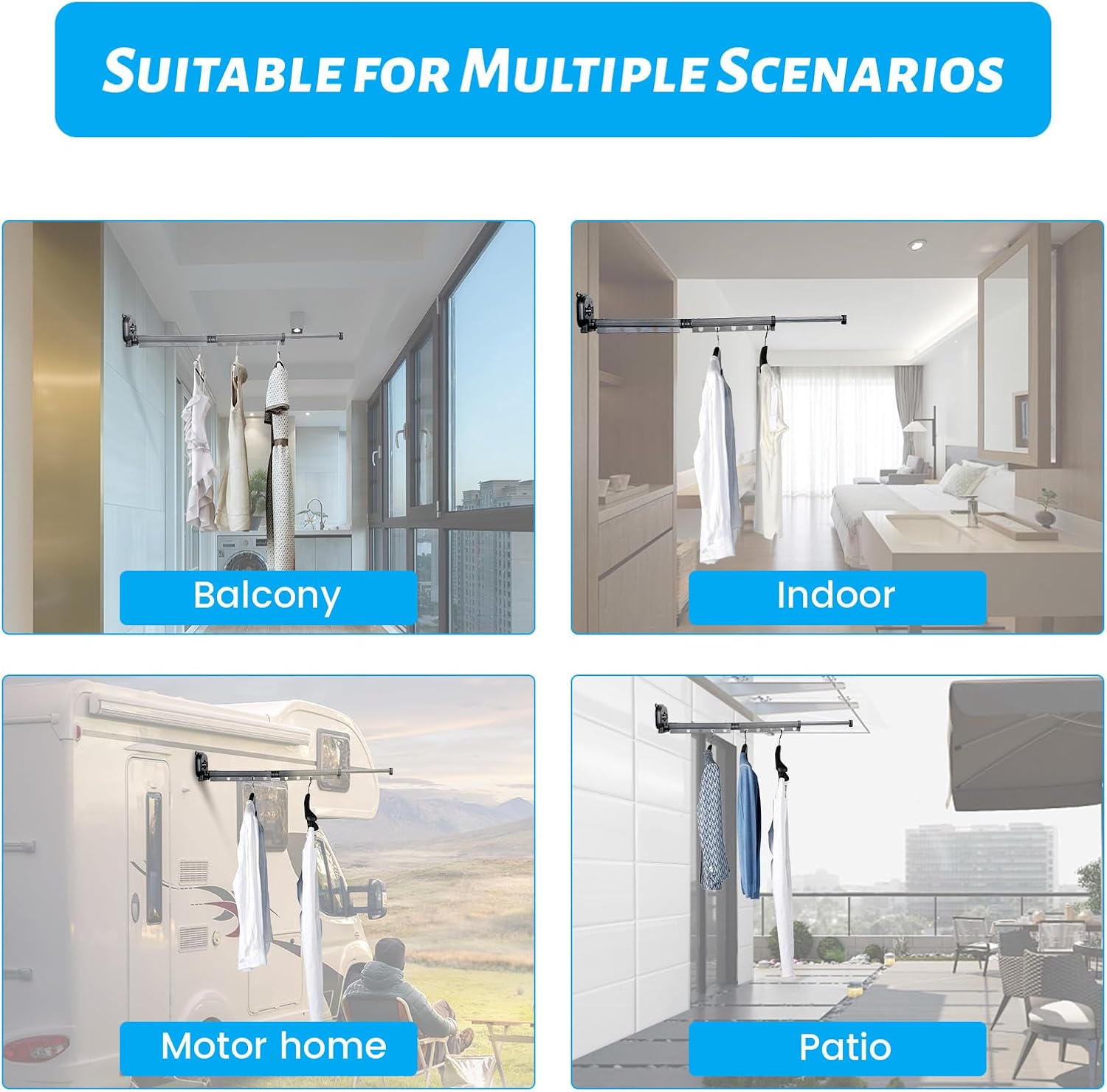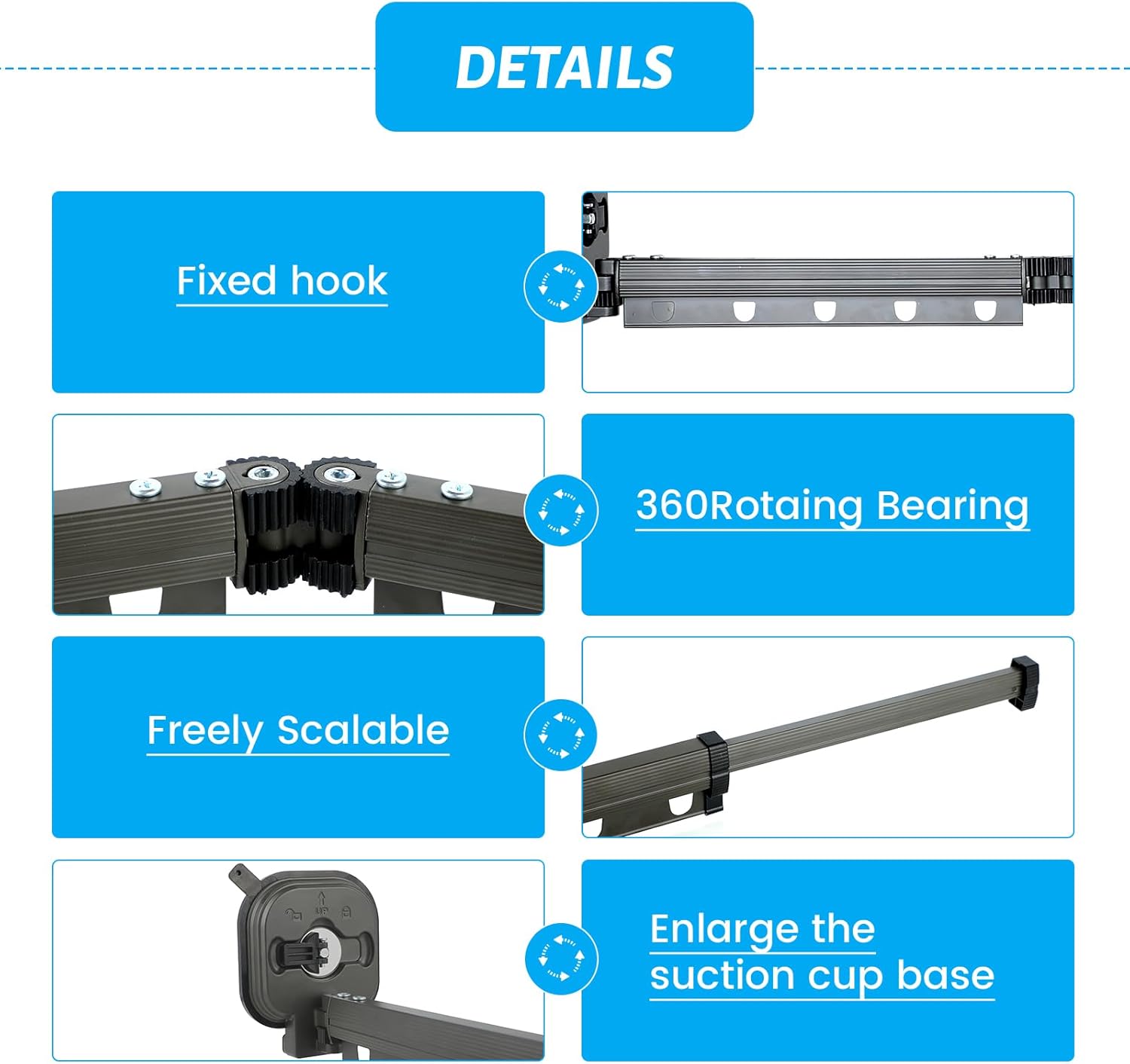 Suport de uscare pentru rufe montat pe perete • Economie de spațiu: Suportul de uscare de perete Domigard poate fi desfăcut atunci când este utilizat și pliat pe perete atunci când nu este utilizat, ceea ce este flexibil și convenabil și nu ocupă deloc spațiu. • Aplicații multiple: Puteți așeza acest suport de uscare montat pe perete pe hol, în curte, pe balcon, în baie, în spălătorie sau lângă fereastra dormitorului, îl puteți extinde complet pe fereastră și puteți lăsa hainele să primească mai multă lumină solară. • Instalare ușoară: Acest suport de uscare montat pe perete este montat cu ventuză, are adsorbție în vid, este puternic portant, ușor de instalat. Peretele pe care urmează să fie montat trebuie să fie neted, cum ar fi plăcile ceramice, deoarece acestea sunt foarte rezistente. • Cârlige rezistente la vânt: Suporturile de uscare de balcon cu cârlige au cârlige rezistente la vânt, astfel încât vă puteți agăța în siguranță hainele pe ele fără a vă face griji că vor fi luate de vânt, fiind potrivite în special pentru utilizare în exterior. • Măiestrie excelentă: Materialul suportului de uscare este aluminiu spațial. Nu vă faceți griji cu privire la ruginire după o perioadă lungă de utilizare. Suprafața produsului este vopsită, cu protecție multistrat. Nu se teme de acid și alcali, rezistență la rugină și coroziune, durabil.