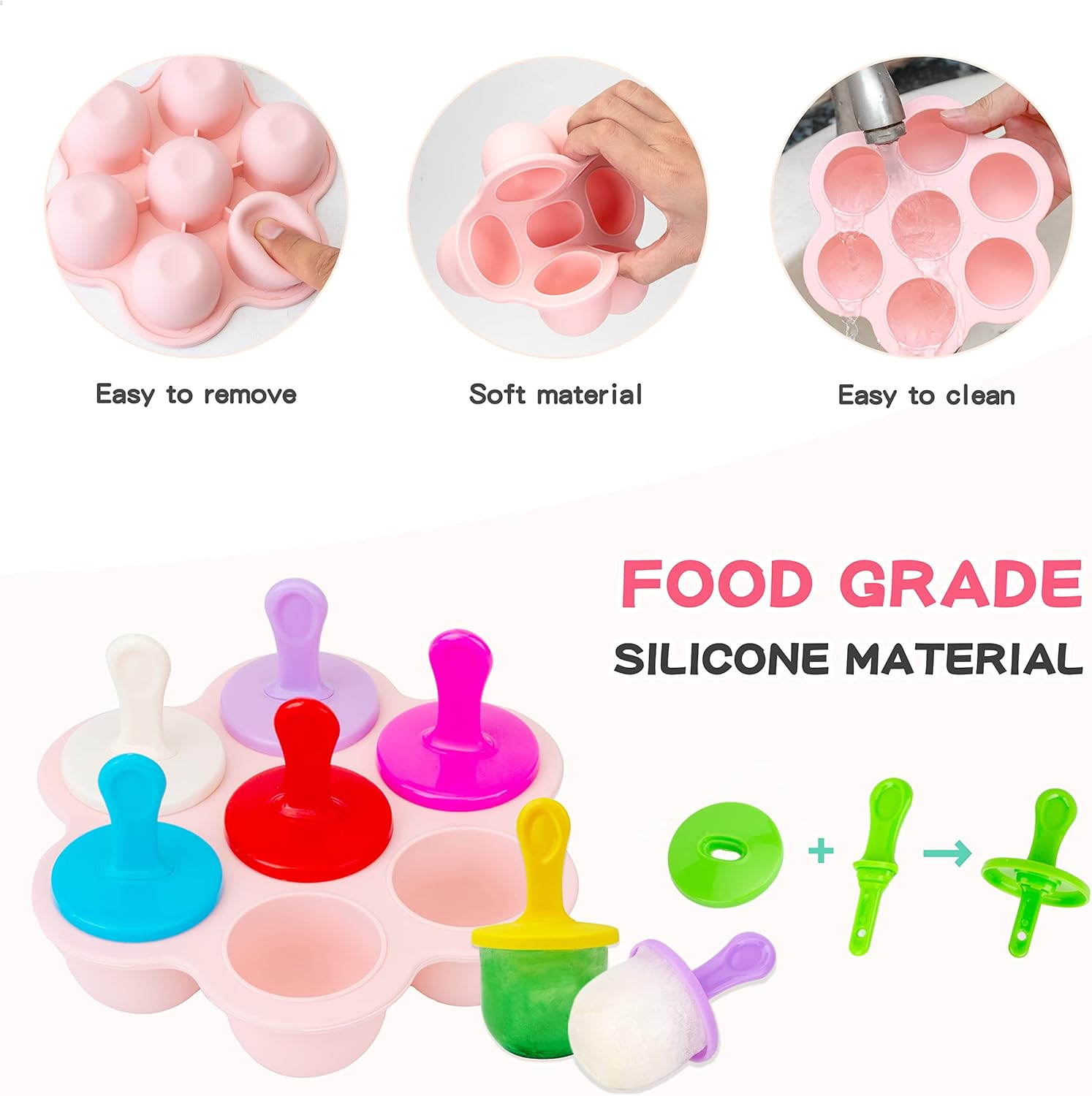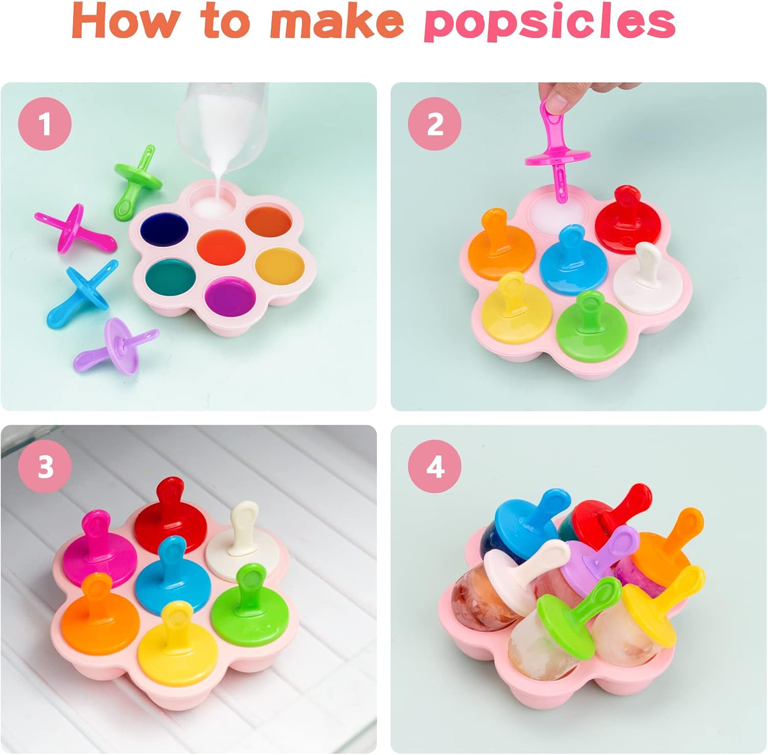 Despre acest produs: Matrițele de gheață AIMEET sunt fabricate din plastic de înaltă calitate și silicon alimentar, fără BPA, inodor și sigur de utilizat. Mini formele de gheață AIXMEET nu numai că pot face acadele de gheață, dar pot fi folosite și ca recipient pentru băuturi congelate pentru copii pentru fructe congelate, iaurt, suc, terci etc. Forma de gheață AIXMEET este ușor de curățat, fie cu apă, fie în mașina de spălat vase. Bucurați-vă de această zi răcoroasă de vară și faceți delicioase acadele de gheață cu copilul dvs. cu matrițele de silicon pentru acadele de gheață AIXMEET. Formele pentru acadele de gheață rezistă la temperaturi cuprinse între -40 și 230 de grade Celsius și pot fi folosite în cuptor, frigider, cuptor cu microunde și mașina de spălat vase.