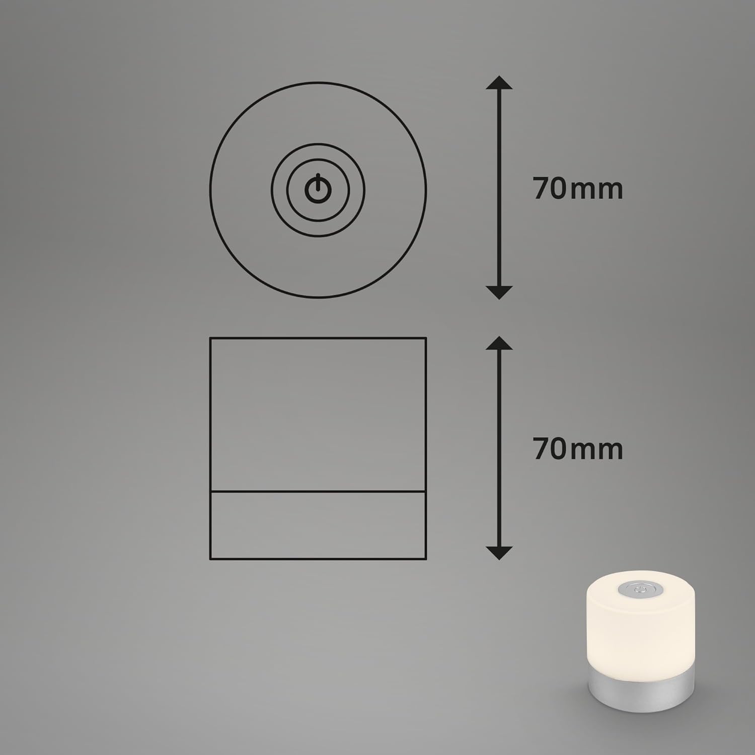 Despre acest articol Mini lampa de masă argintie este alimentată cu baterii și, prin urmare, poate fi utilizată ca lumină mobilă în casa dumneavoastră. Bateria ține până la 15 ore, iar timpul de încărcare este de 2,5 ore. Cu o înălțime de 7 cm, mini lampa pentru copii are un design compact și este foarte practică și poate fi poziționată oriunde. Lampa mini cu baterie, reglabilă în 3 trepte prin atingere (20%, 50%, 100%), este potrivită ca lumină de masă mobilă, lampă decorativă, lumină decorativă, lumină de noapte pentru copii și mini lampă de noptieră. Culoarea luminii este alb cald cu 2700 Kelvin și este potrivită pentru grătare la masa din grădină, pe balcon și terasă sau ca lumină confortabilă în sufragerie, hol și dormitor. Gradul de protecție IP44 protejează lampa de masă LED cu baterie împotriva stropilor de apă, în cazul în care se udă la camping, în aer liber, pe terasă și balcon. Lampa LED poate fi încărcată prin cablu USB-C, care este inclus în pachet. Lampa wireless măsoară 70x70 mm (DxH). Recomandăm încărcarea regulată a luminii și după utilizare, pentru a menține durata de viață a bateriei și pentru a vă bucura mult timp de produsul dumneavoastră. Acest produs este un produs înconjurător. Produsele înconjurătoare sunt lumini care pot fi dezasamblate pentru a verifica separat sursa(ele) de lumină conținută(e). Acest produs conține o sursă de lumină de clasă de eficiență energetică G. Mai multe detalii despre produs