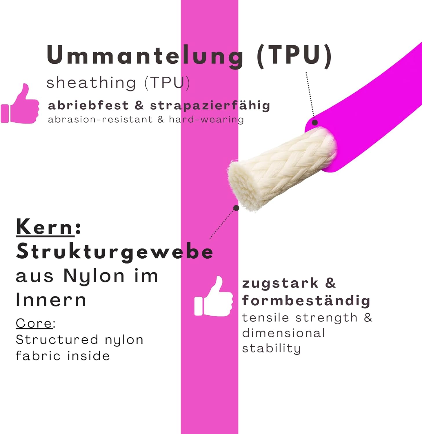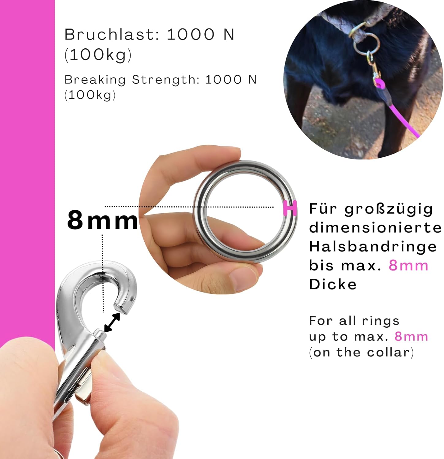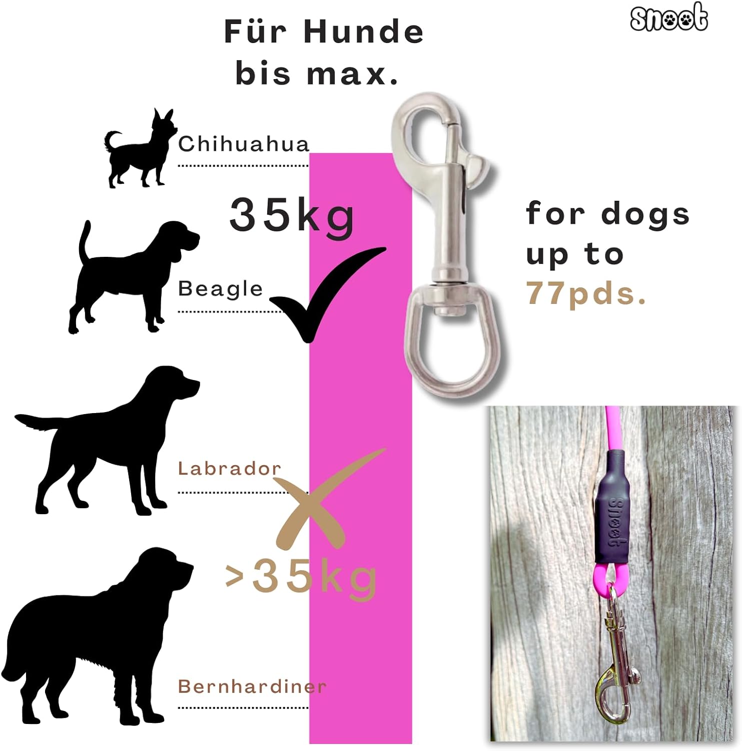 Lesă rotundă premium de 5 metri pentru libertate maximă de mișcare. Lesa de dresaj de înaltă calitate de la SNOOT, cu diametrul de 6 mm, combină calitatea și funcționalitatea. Designul inovator, cu miez intern din nailon multi-împletit și înveliș protector din cauciuc, o face companionul dumneavoastră de încredere în toate condițiile meteorologice. Etanșarea specială a suprafeței respinge eficient murdăria și apa, neutralizează mirosurile și permite curățarea ușoară. Calitate premium în detalii: lungime totală de 5 metri pentru un dresaj optim cu roată liberă. Lesă rotundă de 6 mm pentru o manevrare confortabilă. Miez din nailon multi-împletit de înaltă rezistență, cu înveliș transparent din cauciuc antiderapant. Carabinieră robustă cu șurub profesional pentru o fixare sigură. Curea ergonomică pentru încheietura mâinii pentru o prindere sigură. Notă importantă de siguranță: Această lesă a fost special concepută ca lesă de rechemare pentru dresaj și roată liberă controlată. Din motive de siguranță, nu este potrivită pentru legare sau utilizare nesupravegheată. Vă rugăm să nu lăsați niciodată câinele nesupravegheat cu lesa pentru a evita posibila ros sau încurcare.
