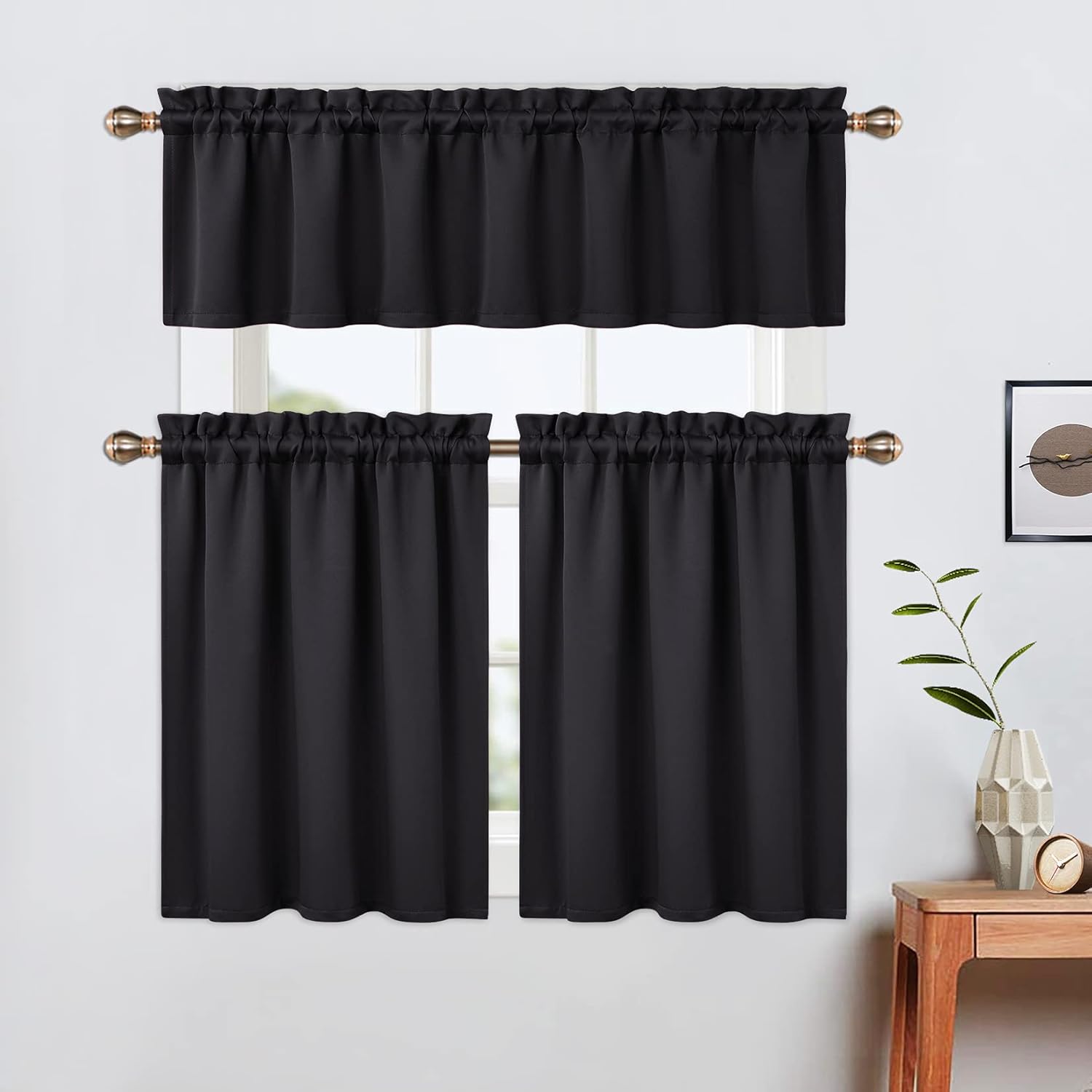 [RESIGILAT] LinTimes Perdele Bucatarie Blackout, 66cm x 76cm, Set de 2, Negru