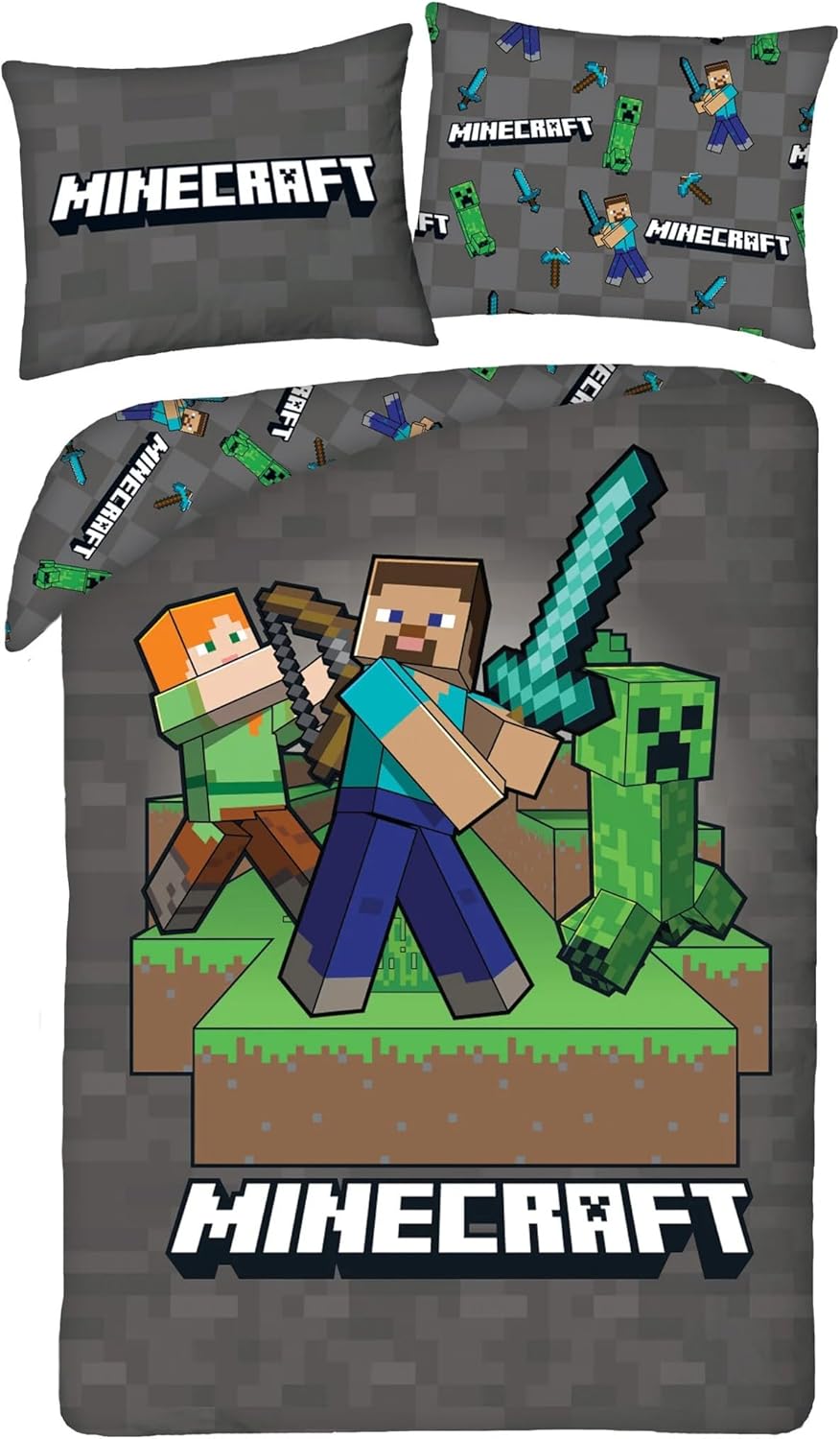 [RESIGILAT] Minecraft Set Lenjerie Pat, Reversibil, 140 x 200 cm, 1 Fata Perna