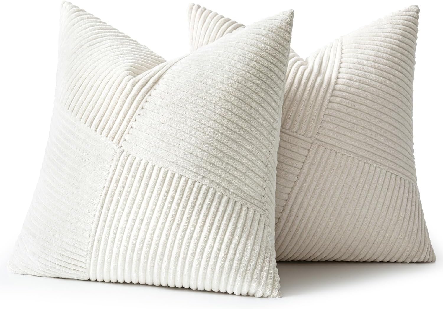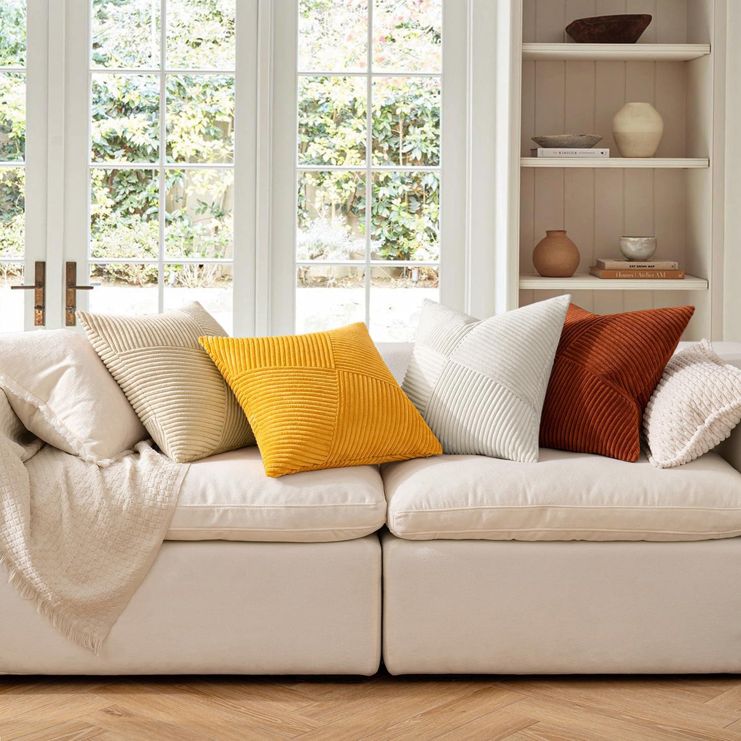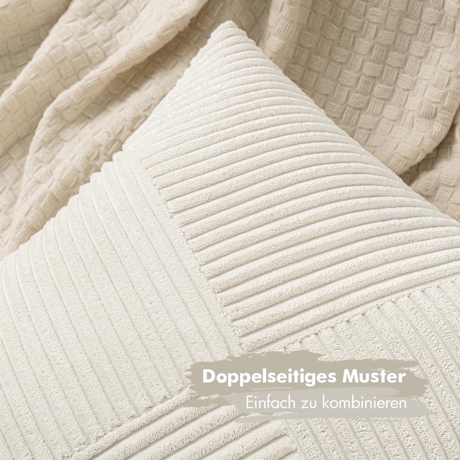 [RESIGILAT] Fata de perna MIULEE 50x50 crema set 2 huse dungi mozaic