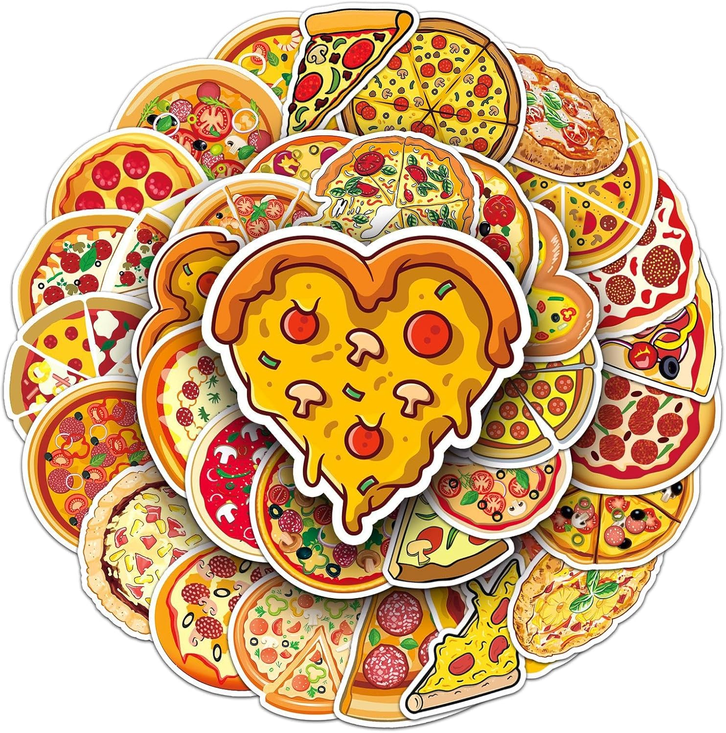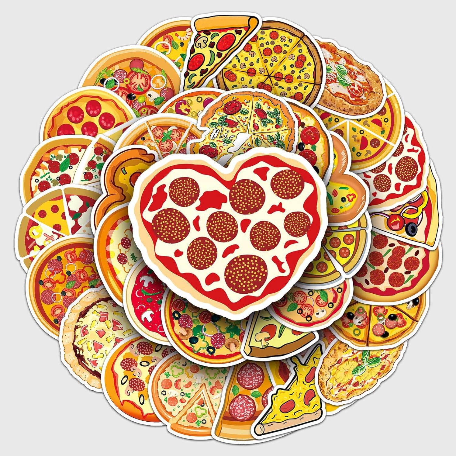 [RESIGILAT] Pachet 50 autocolante pizza, vinil impermeabil, pentru laptop, telefon
