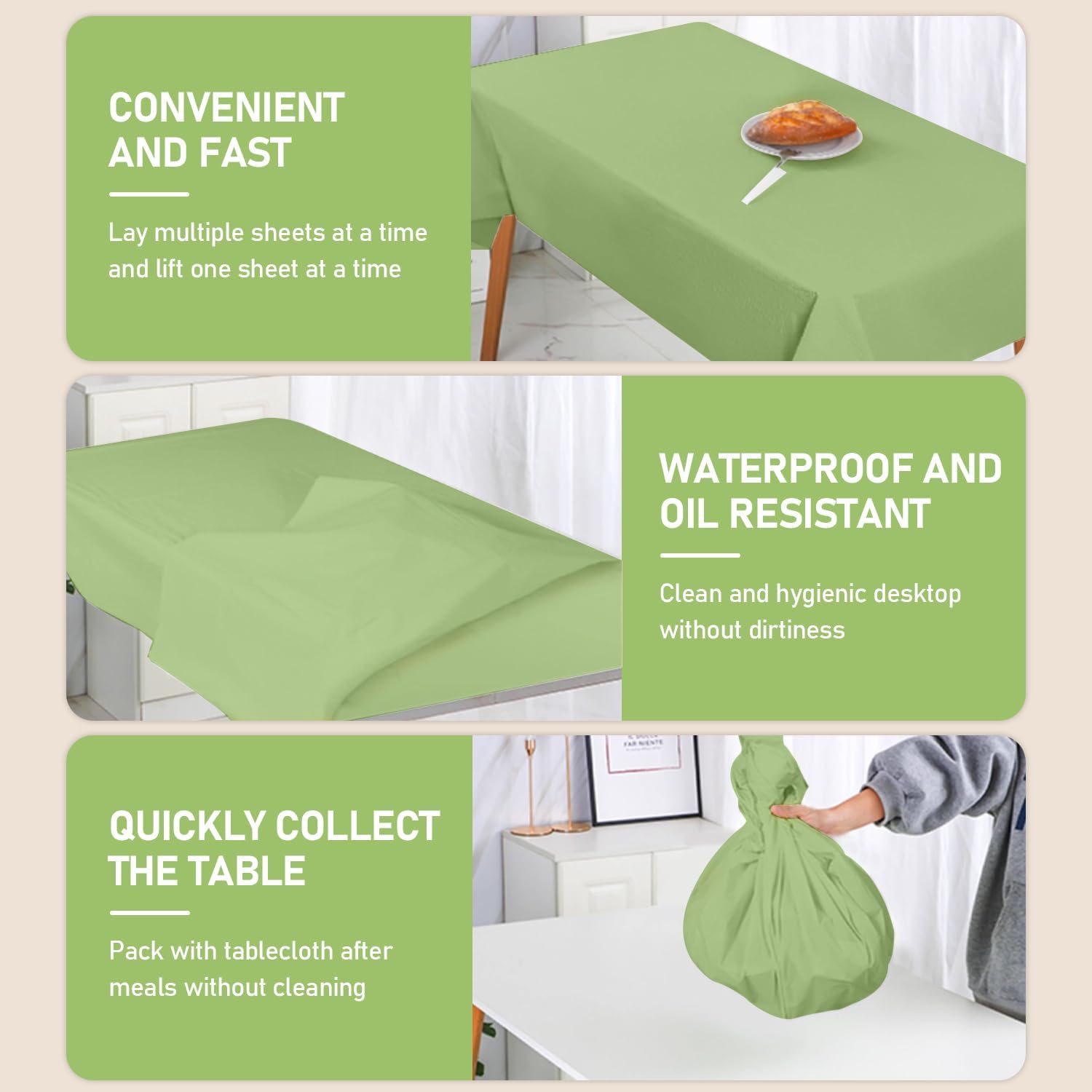 CALITATE ÎNALTĂ: Fața de masă dreptunghiulară verde de unică folosință este fabricată din material PEVA de înaltă calitate, care este sigur, ecologic, biodegradabil și impermeabil. Poate fi, de asemenea, reutilizată după curățare. Materialele plastice pot fi reciclate, minimizând emisiile de carbon.