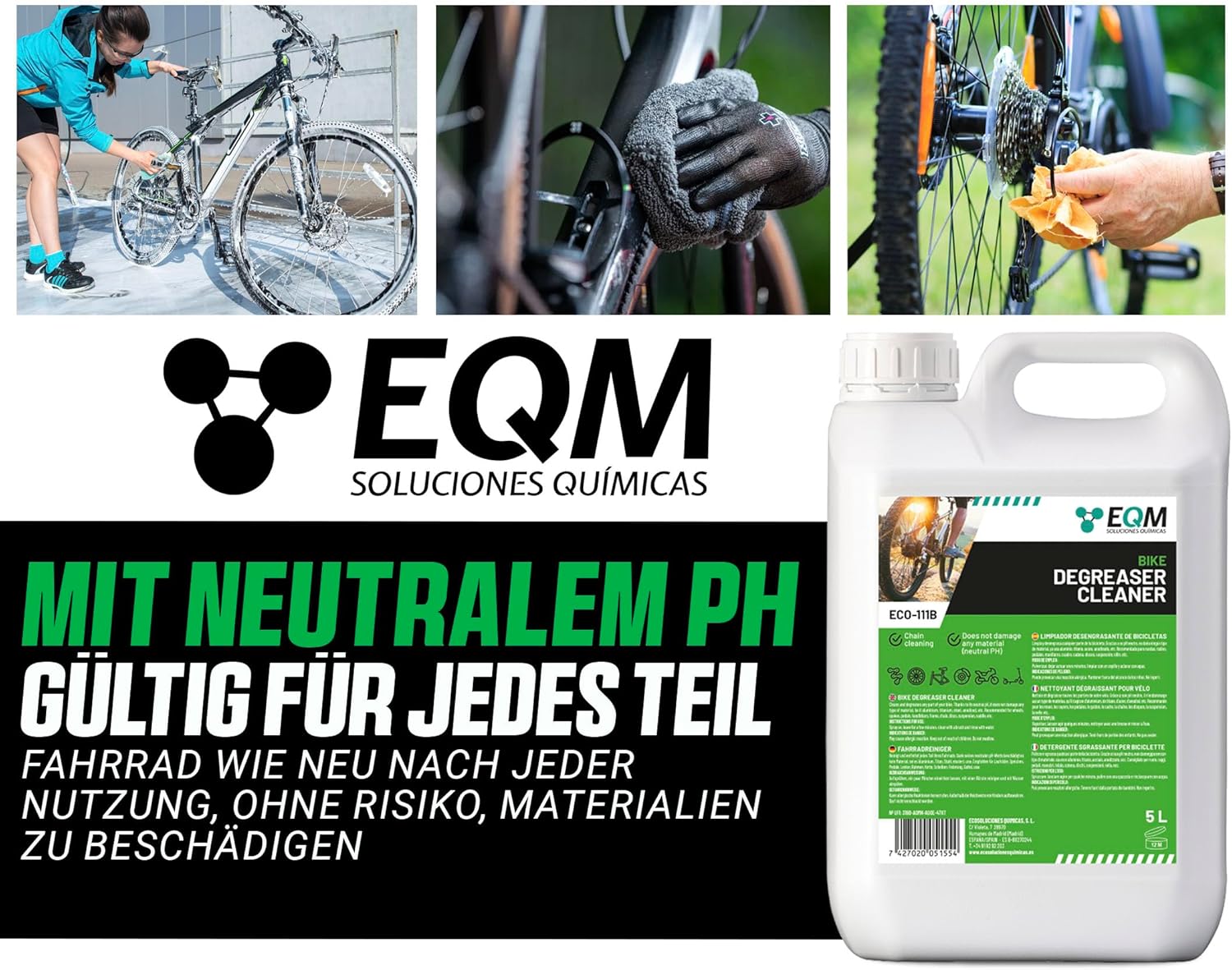 VERSATIL ȘI NEUTRU: ECO-111B curăță în siguranță toate tipurile de murdărie de pe bicicletă. Datorită pH-ului său neutru, este inofensiv pentru toate tipurile de materiale (aluminiu, titan, oțel, anodizat etc.)