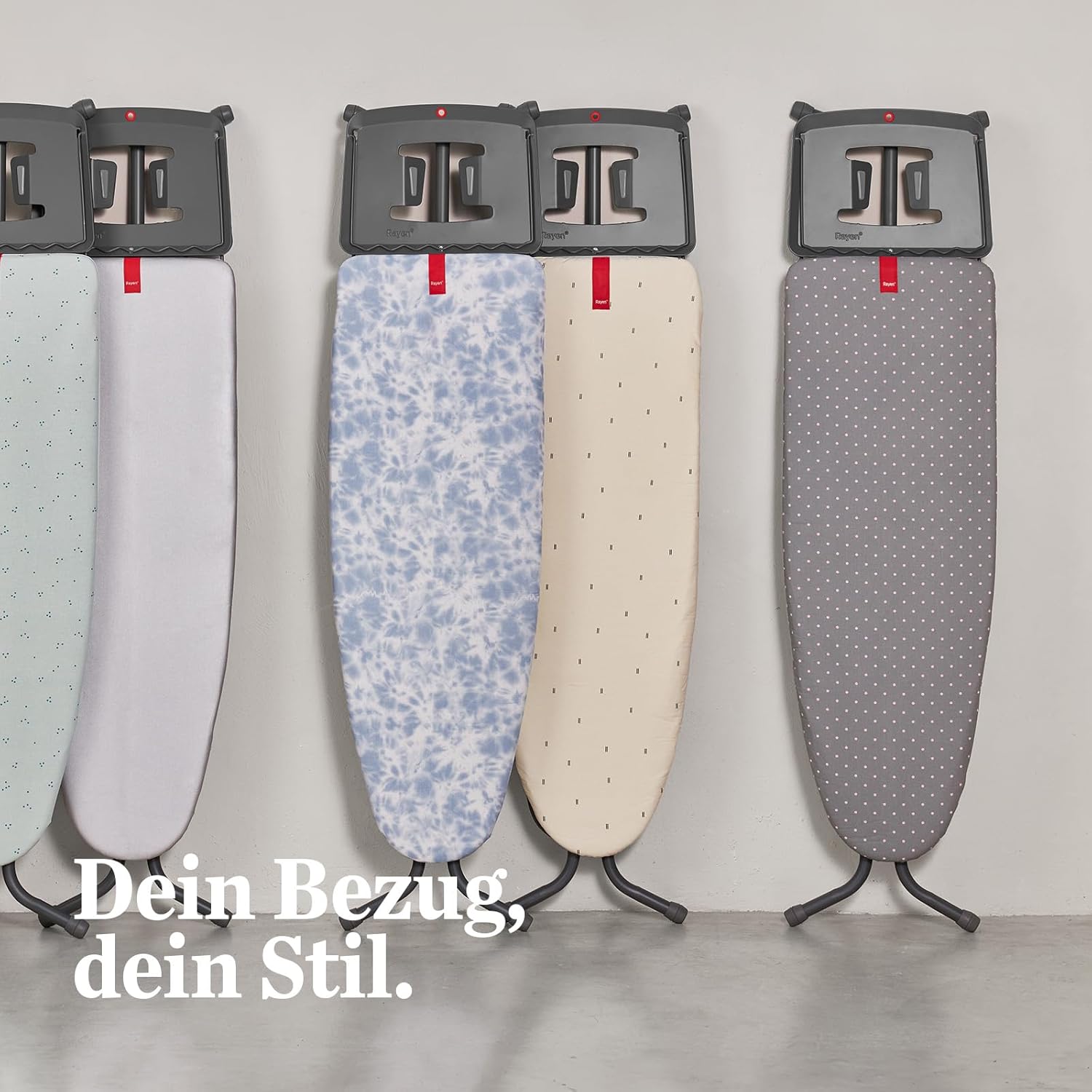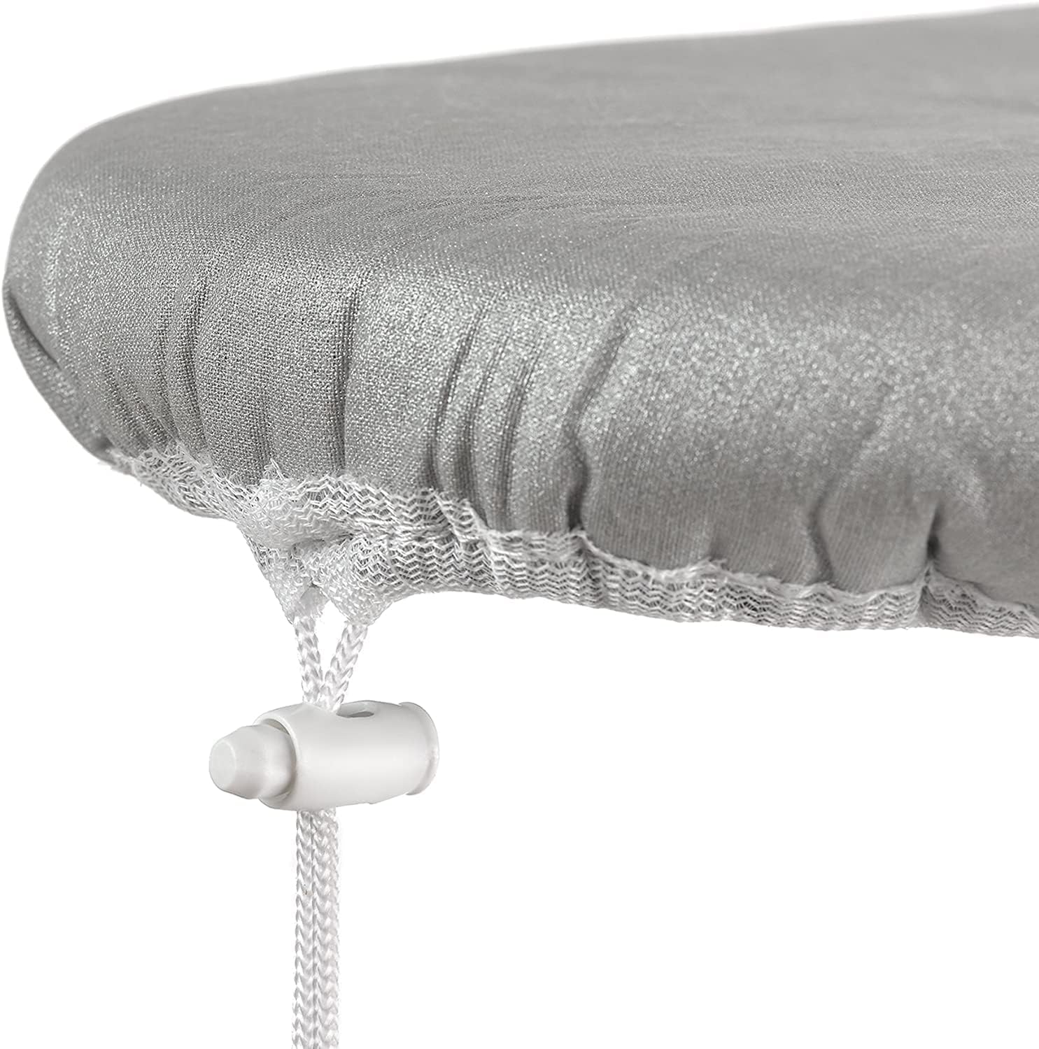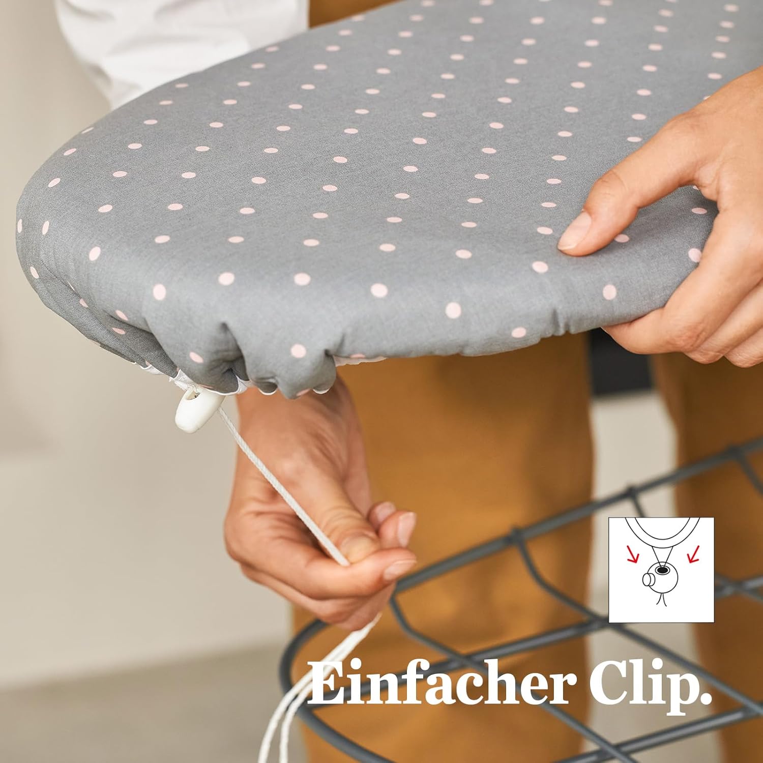 Husă reglabilă pentru masa de călcat, potrivită pentru orice masă de până la 130 x 47 cm. Material 100% bumbac, cu o bază din spumă și alta din flanelă. Sistem de fixare EasyClip.