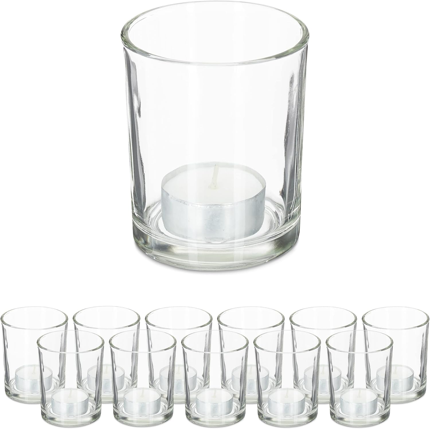[RESIGILAT] Relaxdays Suporturi Lumanari Tip Pastila, Set 12, Sticla Transparenta