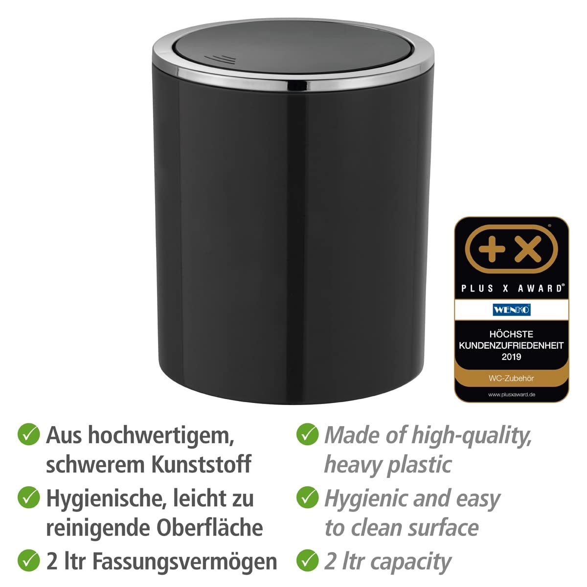 [RESIGILAT] Wenko Cos gunoi Inca, capac basculant, 2 l, negru