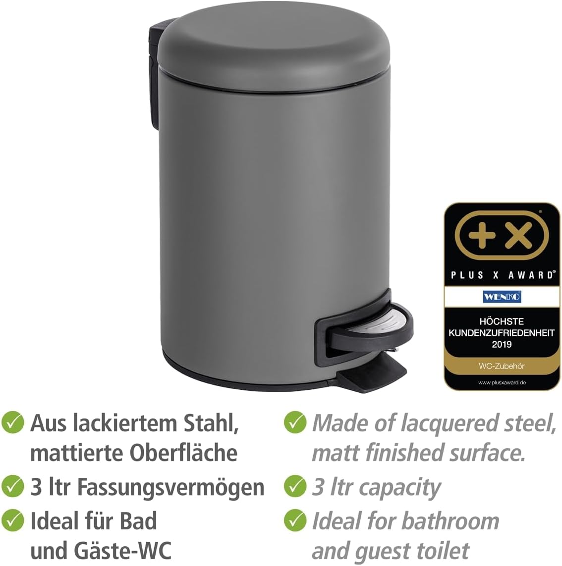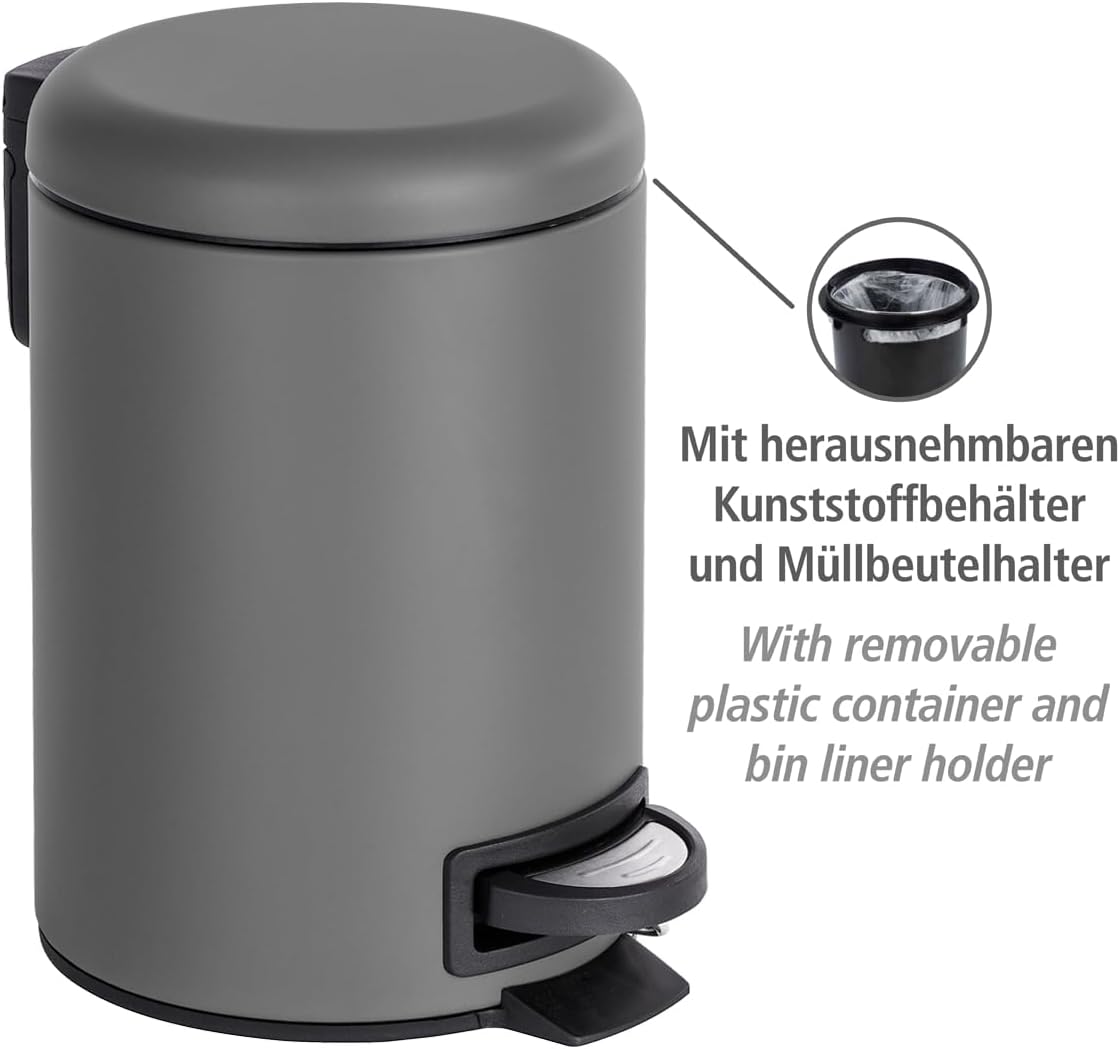[RESIGILAT] WENKO Cos gunoi pedal, 3 litri, gri, 22,5 x 17 x 25 cm
