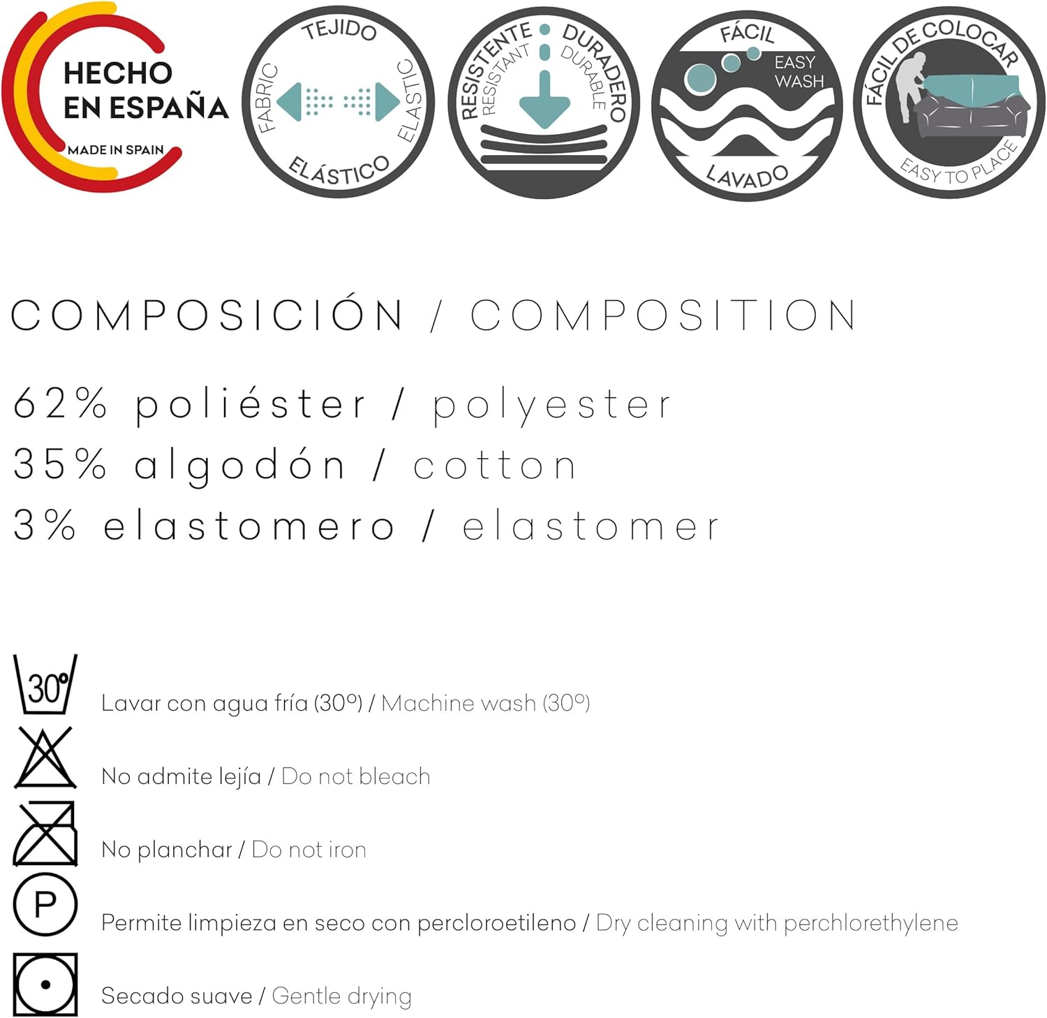 Informații despre acest articol MODELE DISPONIBILE: canapea 1 loc, canapea 2 locuri, canapea 3 locuri, canapea 4 locuri, canapea 3 locuri Clic-Clac, Wing, Relax, fotoliu Relax cu picioare îndoite, pachet husă scaun 2, pachet husă scaun cu spătar 2, șezlong braț lung dreapta, șezlong braț lung stânga, șezlong braț scurt braț lung dreapta, șezlong braț scurt stânga. COMPATIBILITATE COMPLETĂ: Husa elastică se adaptează la toate modelele de canapele. Datorită elasticului cusut pe partea interioară a husei canapelei și a benzilor elastice cusute pe partea inferioară a husei, aceasta nu alunecă și rămâne ferm în poziție. DESIGN INOVATIV: Acest produs este proiectat, dezvoltat și fabricat în Spania. Avem o gamă largă de modele și culori pentru a vă înfrumuseța casa. Protejează canapeaua de uzura zilnică, de pete, etc. Este rezistentă și respirabilă. Ideal pentru cei care doresc să protejeze canapeaua. UȘOR DE INSTALAT ȘI CURAT: Această husă pentru canapea este ușor de instalat datorită țesăturii sale elastice. Poate fi curățată cu percloroetilenă și curățată uscat cu apă rece la 30º. Nu suportă înălbitor și nu poate fi călcată. [NOTĂ: Datorită diferitelor dispozitive de afișare, culoarea produsului poate varia ușor]. INCLUZAT: Produsul conține 2 părți pentru a realiza husa pentru scaun cu aripi. [NOTĂ: Vă rugăm să verificați dimensiunea și tipul canapelei înainte de a plasa comenzile]. Mai multe detalii despre produs