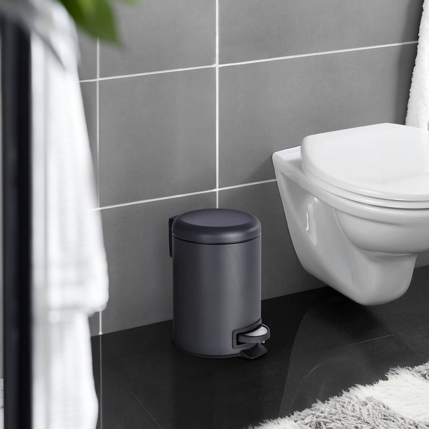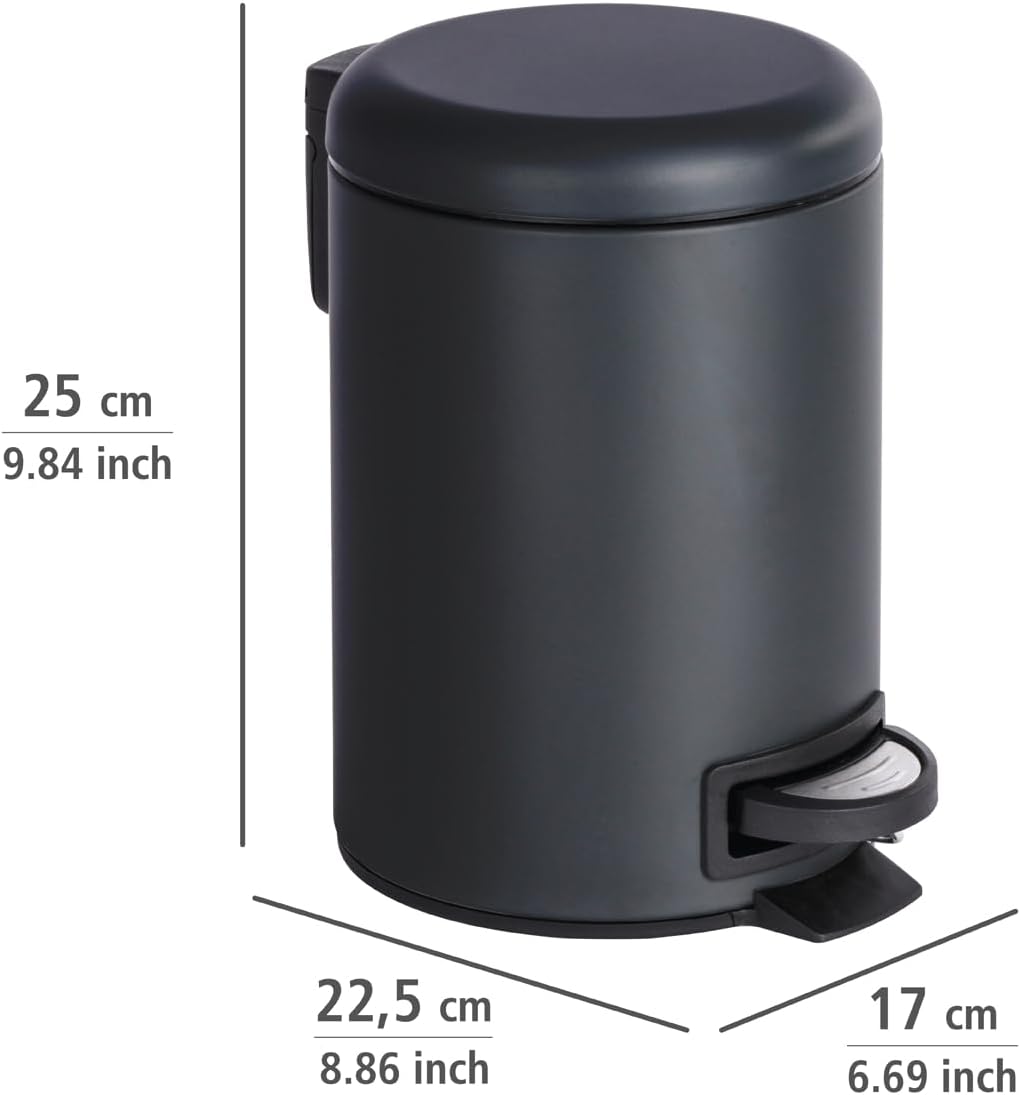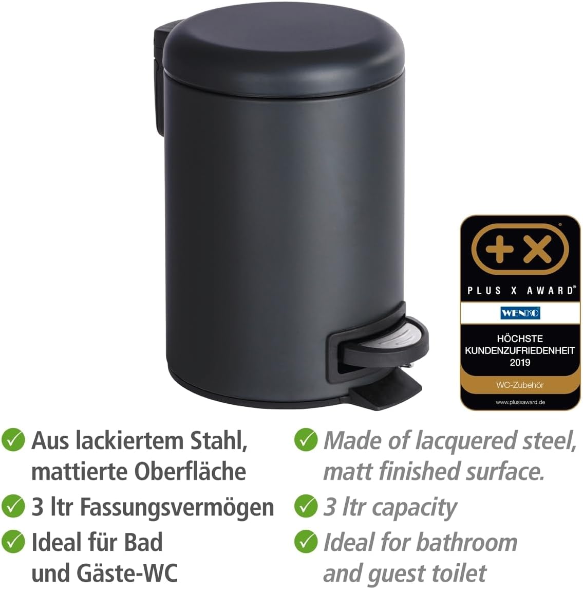 WENKO Treteimer Mod. Leman 3 Liter mit herausnehmbarem Einsatz aus lackiertem Stahl ideal für Badezimmer oder Küche 17 x 25 x 22,5 cm Schwarz matt