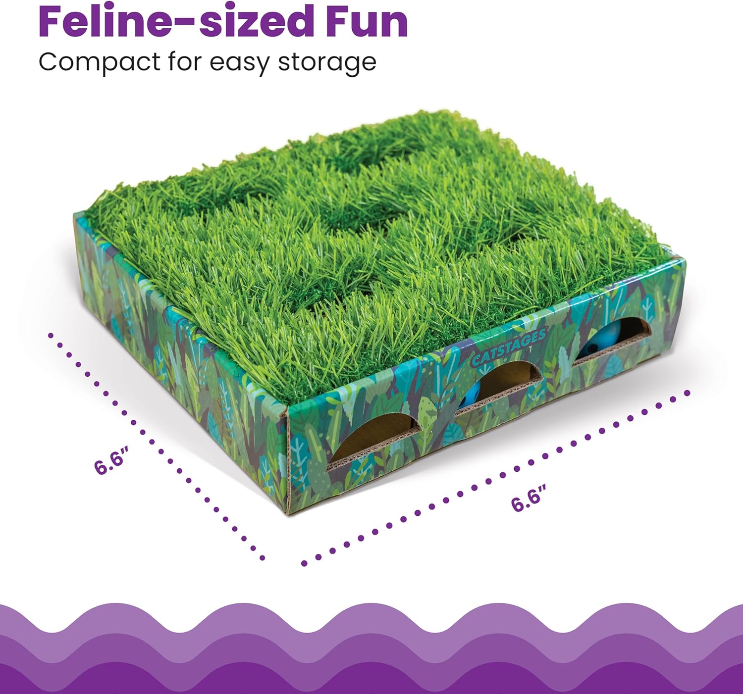 Această jucărie Catstages Cutie de vânătoare cu petic de iarbă Mint Mica este creată pentru a stimula instinctele naturale ale pisicii tale printr-un joc interactiv și amuzant. Cutia ușoară din carton conține trei bile zornăitoare care se rostogolesc atunci când pisica lovește sau atinge cu lăbuțele, oferindu-i ore întregi de distracție și activitate. Cele cinci deschideri special concepute în cutie permit acces facil și încurajează explorarea, satisfăcând nevoia naturală de vânătoare și joacă.