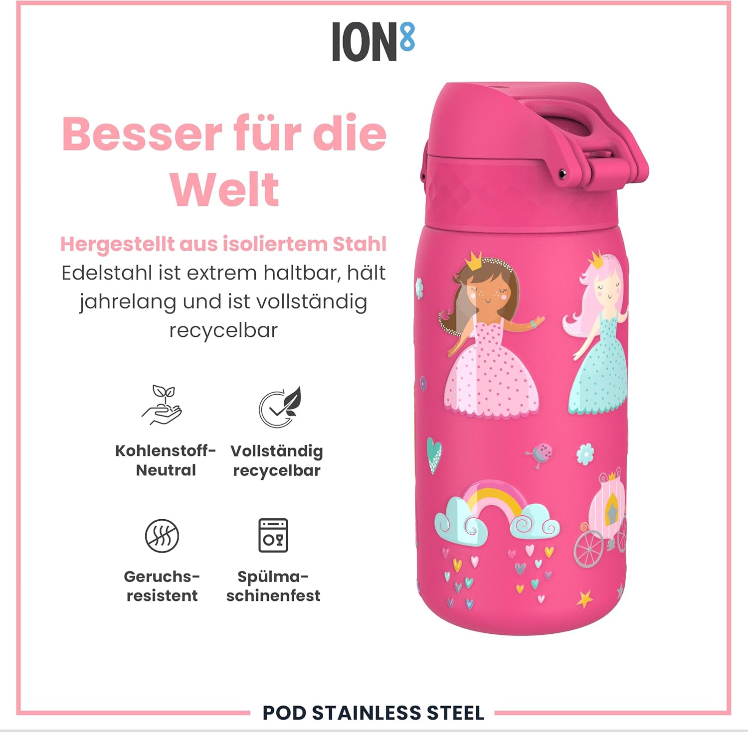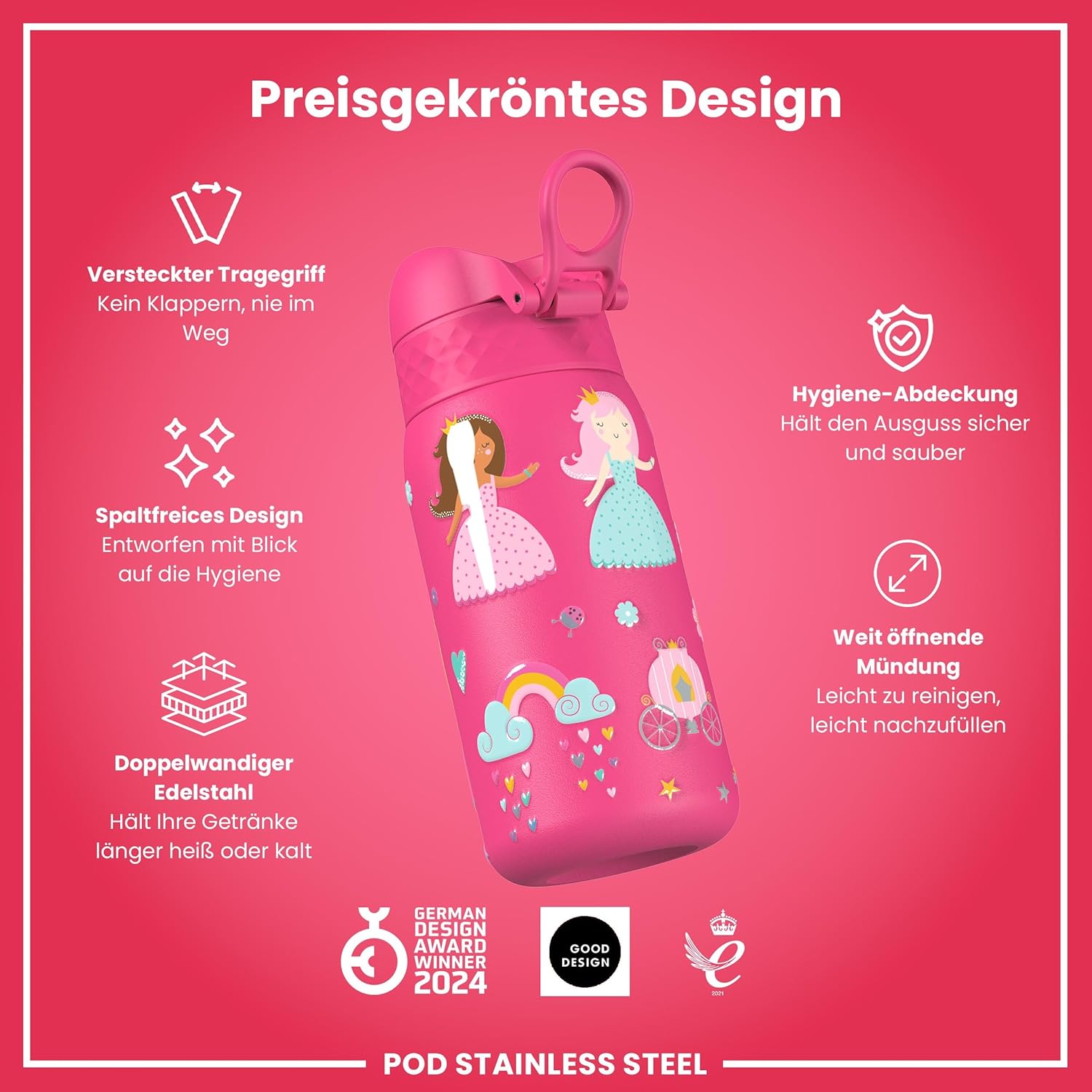 Această sticlă izolată din oțel inoxidabil este alegerea ideală pentru copii, combinând durabilitatea cu funcționalitatea practică. Datorită izolației ThermoShield în vid, păstrează băuturile calde sau reci timp îndelungat și este rezistentă la scurgeri, ușor de curățat și compatibilă cu mașina de spălat vase.