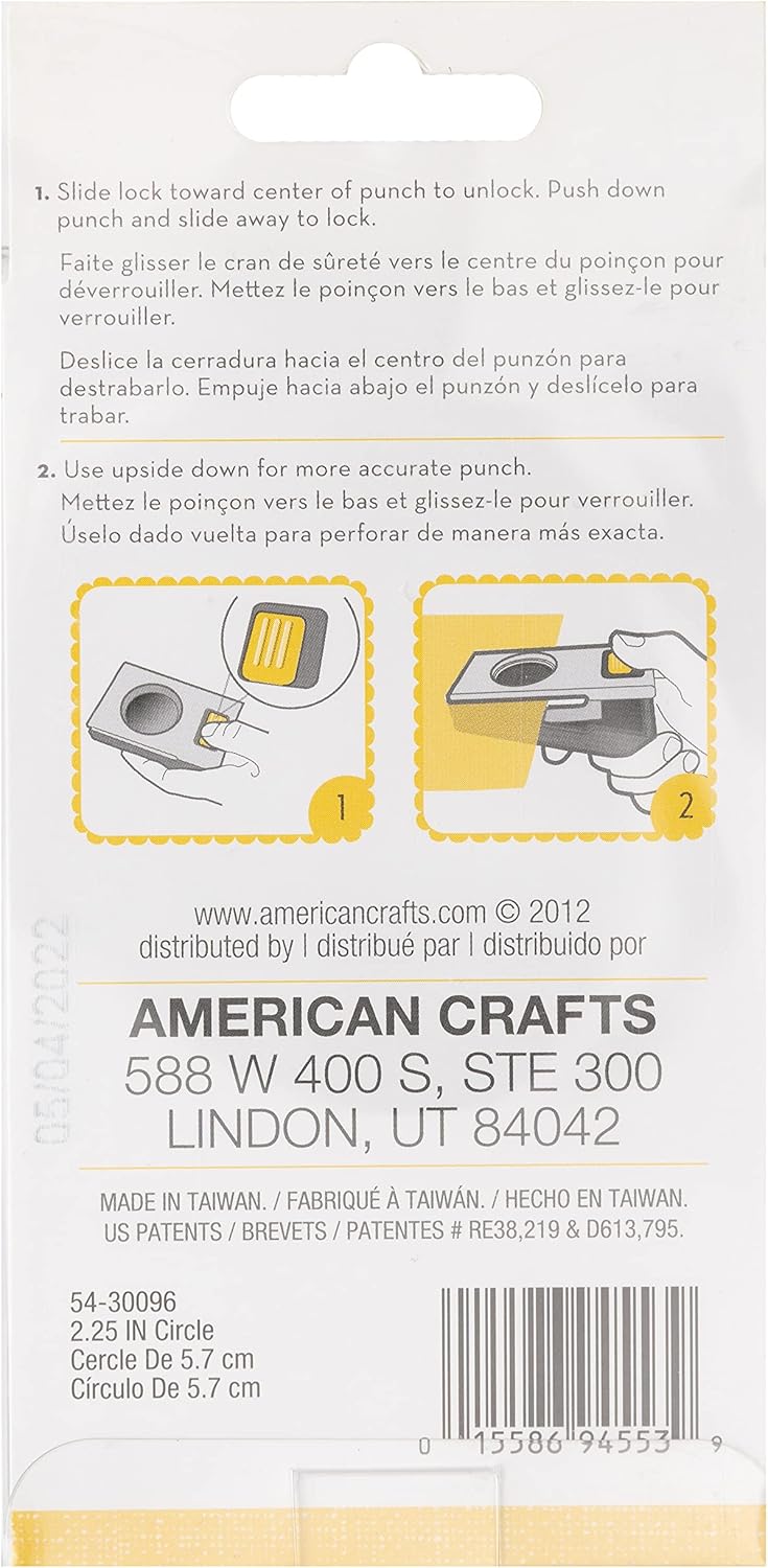 Informații despre acest articol Design circular de 2 1/4 inch Stivuibil Se blochează închis Notă: Perforați prin câteva bucăți de folie de aluminiu pentru a ascuți lama HOLE PUNCHER: Perforă un cerc în toate proiectele dvs. de hârtie, ideal pentru hârtie, cărți, fotografii și carton, potrivit pentru hârtie craft și carton de până la 220 g/m². Notă: Utilizați acest perforator craft de înaltă calitate pentru a crea desene și lucrări de artă decupate unice pe felicitări, pagini de scrapbook, materiale mixte, artă modificată și multe altele! Acest pachet conține un perforator de hârtie mare de la Paper Shapers: Circle. Dimensiunea aproximativă a piesei decupate este de 2-1/4 inch. Mai multe detalii despre produs