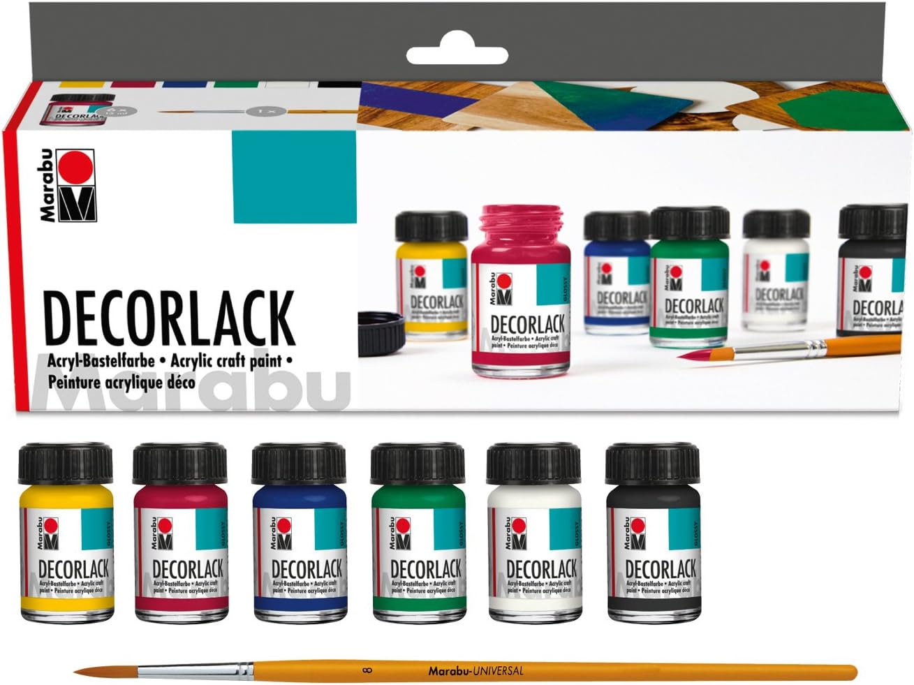 [RESIGILAT] Set lac acrilic Decorlack Acryl, 6 culori + pensulă, 15 ml