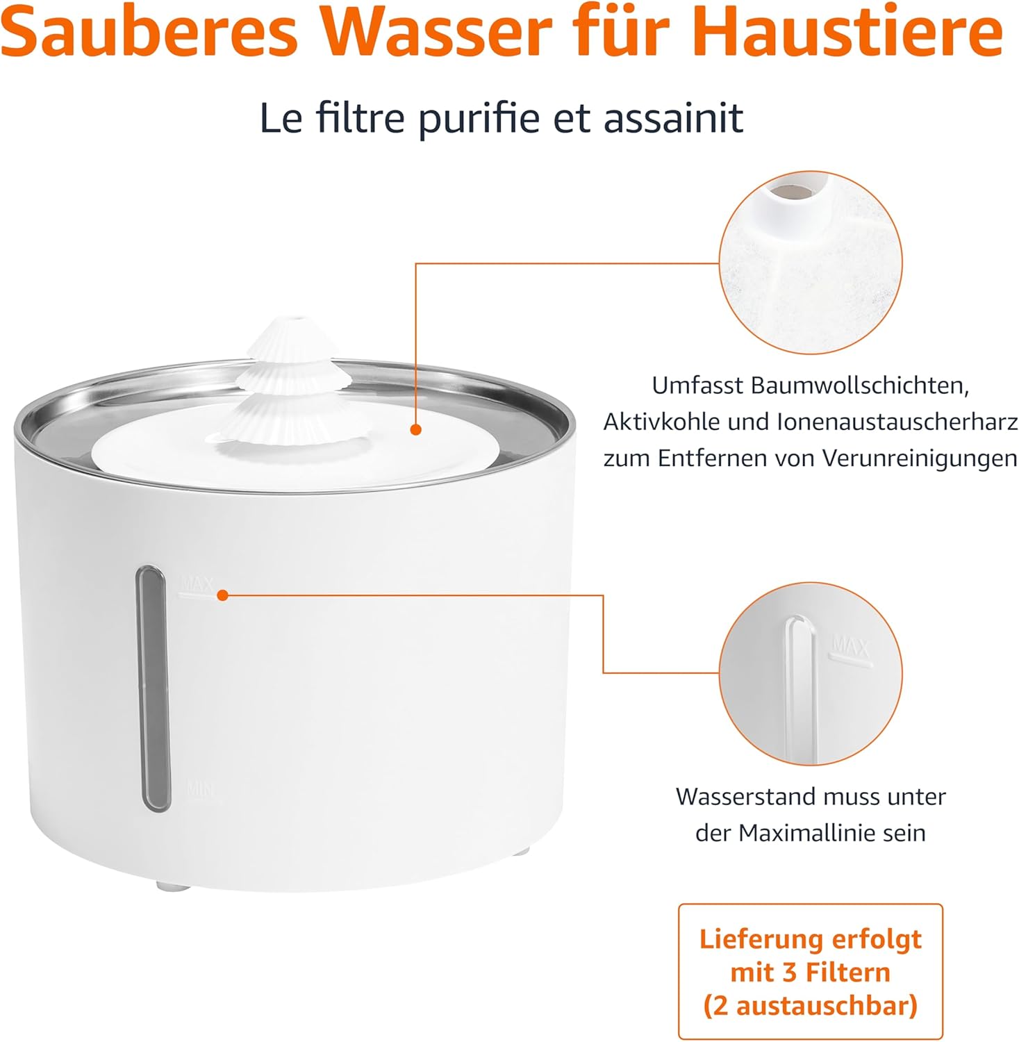 [RESIGILAT] Amazon Basics Fantana pentru animale, 3 l, otel inoxidabil, alb