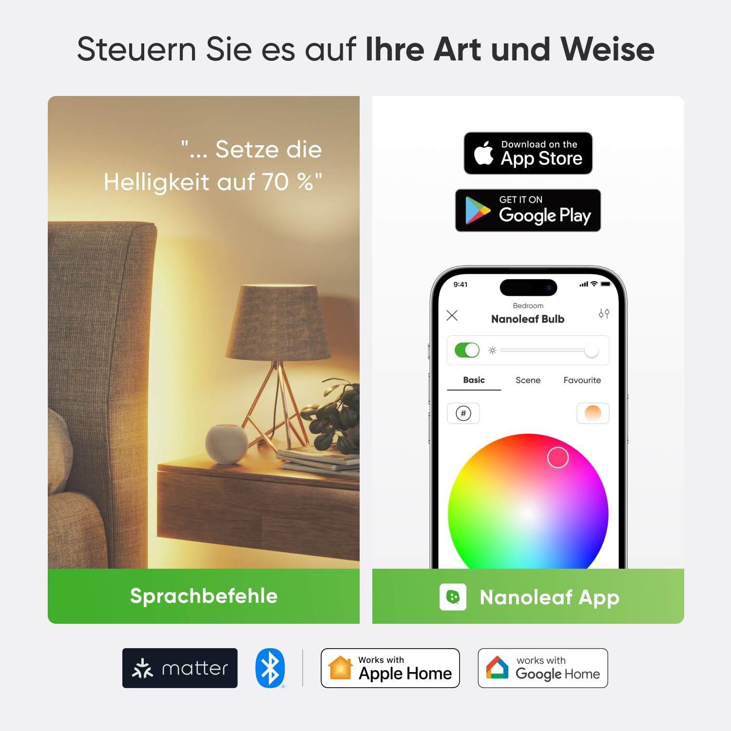 [RESIGILAT] Nanoleaf Essentials E27, 2 becuri LED RGBW, control aplicatie, Alexa
