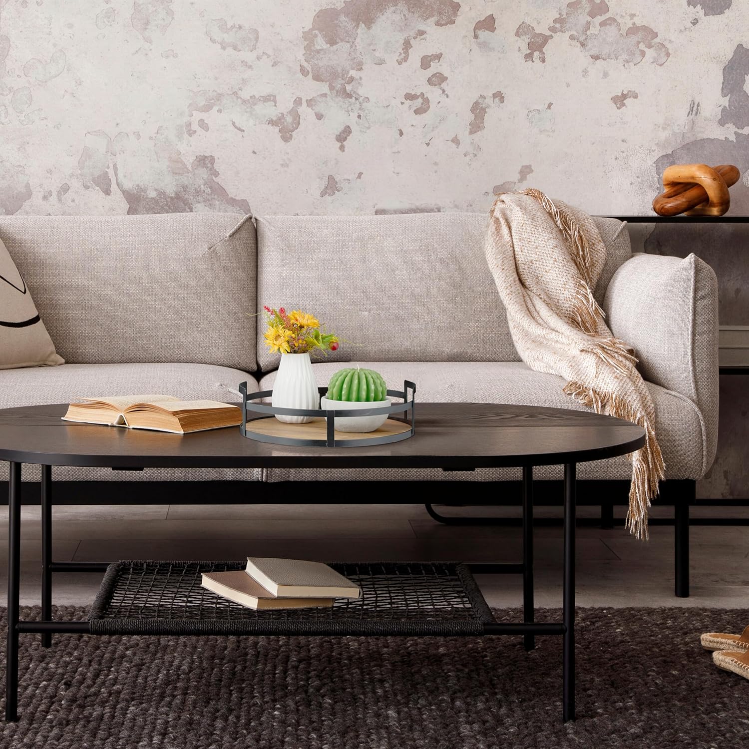 [RESIGILAT] Tava rotunda Relaxdays, lemn si fier, decorativa maro/negru