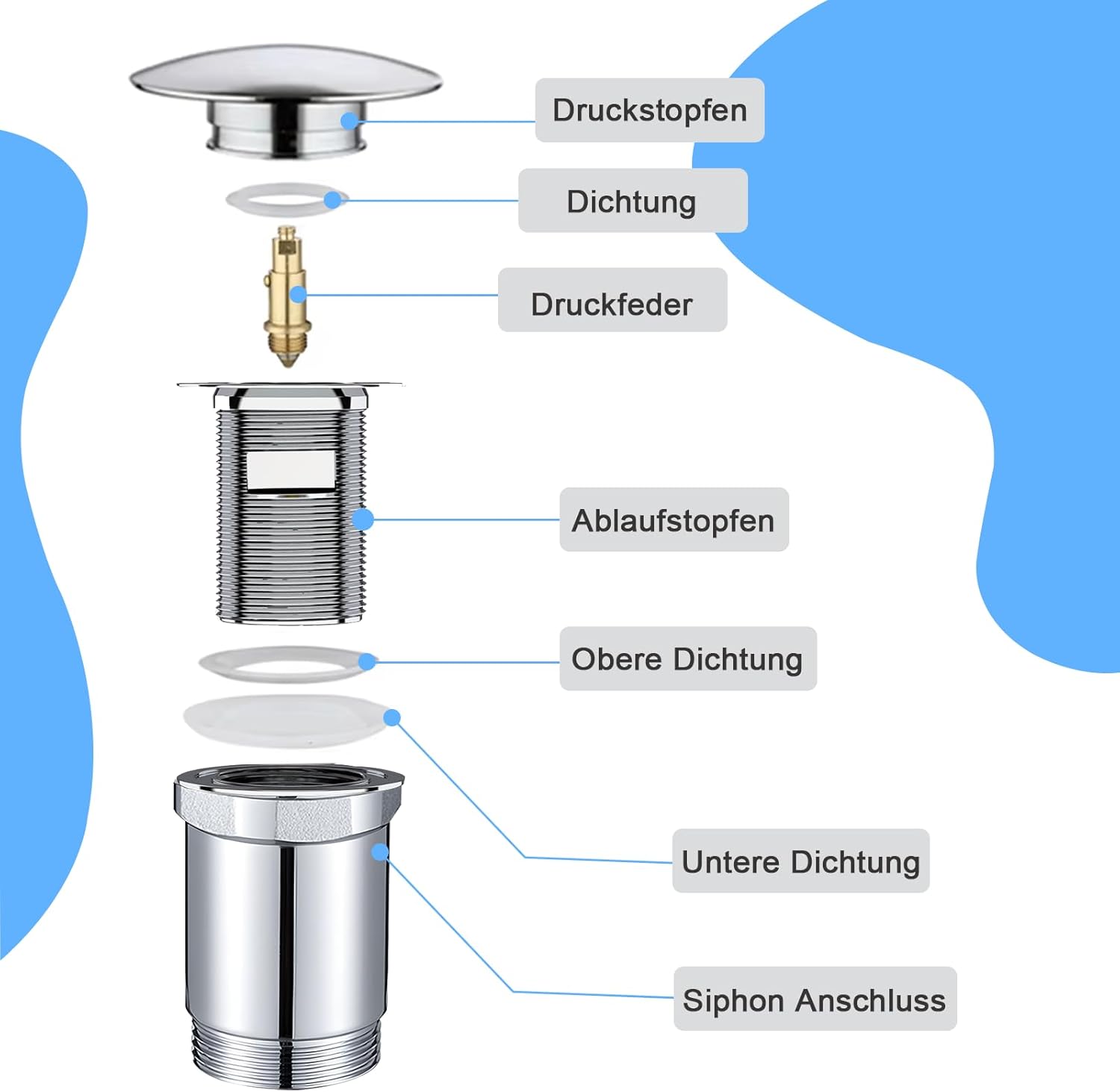 Informații despre acest articol Conexiune standard G 1 ¼ "inci, instalare ușoară în doar câțiva pași, nu sunt necesare unelte, perfect compatibil cu toate chiuvetele și lavoarele standard. Material siliconic de înaltă calitate, moale și durabil, oferă o rezistență excelentă la îmbătrânire, uscăciune și o performanță de etanșare mai bună pentru a preveni scurgerile. Potrivit pentru chiuvetele de oaspeți cu preaplin, asigură o drenare eficientă și rezolvă problema scurgerii. Rezistent la rugină, la coroziune, la zgârieturi, robust și durabil pentru utilizare pe termen lung. Arc de compresie din alamă masivă pentru o performanță excelentă de revenire, asigură o etanșare rapidă și o drenare simplă cu un singur buton. Mai multe detalii despre produs