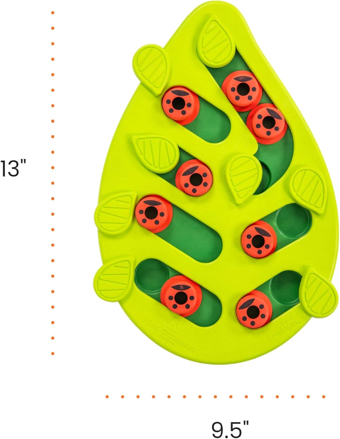 Puzzle-ul Play Catstages Nina Ottosson Buggin' Out este jucăria interactivă supremă pentru pisici, care combină stimularea mentală, distribuirea de recompense și îmbogățirea hranei într-un singur joc captivant. Conceput ca o jucărie pentru pisici de interior, pisoi și animale de companie, acest puzzle pentru pisici are 16 compartimente pentru recompense care pot conține până la ¼ cană de hrană, fiind un hrănitor lent perfect pentru pisici, care ajută la prevenirea supraalimentării. Pisicile tale inteligente apasă cu laba, împing și rotesc înotătoarele în formă de frunză și cuiele de buburuză pentru a descoperi recompense ascunse, oferind stimulare și distracție în rezolvarea problemelor. Această jucărie de îmbogățire pentru pisici ajută la distrarea pisicilor plictisite de interior, contribuind în același timp la reducerea comportamentelor distructive. Fie că este folosit ca puzzle cu recompense pentru pisici, bol cu ​​hrănitor lent pentru pisici sau hrănitor interactiv pentru pisici, acesta încurajează obiceiuri alimentare sănătoase și joaca captivantă. Construit cu gândul la siguranță și durabil, acest puzzle cu hrană pentru pisici nu are piese detașabile, fiind ușor de curățat și durabil. Ideal pentru a fi utilizat ca alternativă la jucăriile de mestecat și jucăriile pentru erupția dentară, poate fi folosit ca jucărie pentru pisici, puzzle pentru câini mici sau chiar ca jucărie de îmbogățire pentru căței! Acest puzzle stimulant oferă distracție nesfârșită prietenului tău felin, menținându-l în același timp activ mental și fizic. Adaugă entuziasm mesei și jocului cu această jucărie interactivă pentru pisici, care promovează abilitățile de rezolvare a problemelor și instinctele de căutare a hranei!