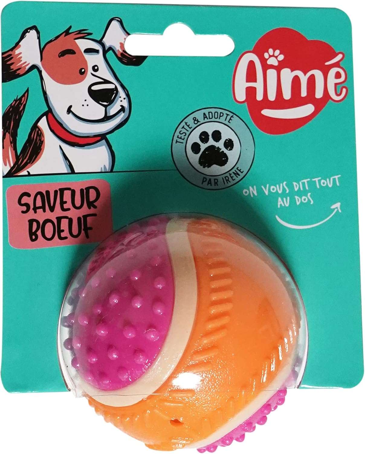 Descrierea produsului Minge pentru câini Aimé 5 Senses. Cu această minge nouă, câinele dumneavoastră va fi încântat să poată mușca și să se joace cu o minge care va satisface atât câinii de talie mare, cât și pe cei mai mici. Câinele dumneavoastră va avea un gust bun de carne de vită și îi va plăcea să se joace și să mestece această minge. De dimensiuni mici, este ușor de depozitat și transportat, o puteți lua oriunde. Câinele dumneavoastră va putea face mișcare și sport alergând după această minge. Îi va oferi și mai multă plăcere, cu mirosul său de carne de vită. Are o revenire bună și va fi durabilă pe termen lung. Copiii vor fi fericiți să se poată juca în siguranță cu câinele dumneavoastră în grădină. Acesta își va putea folosi cele 5 simțuri: atingerea, gustul, văzul, mirosul și auzul. Culorile sale vii vă vor permite să identificați cu ușurință jucăria, acasă și afară. Dimensiune: 6 cm. Setul conține: 1 x Jucărie