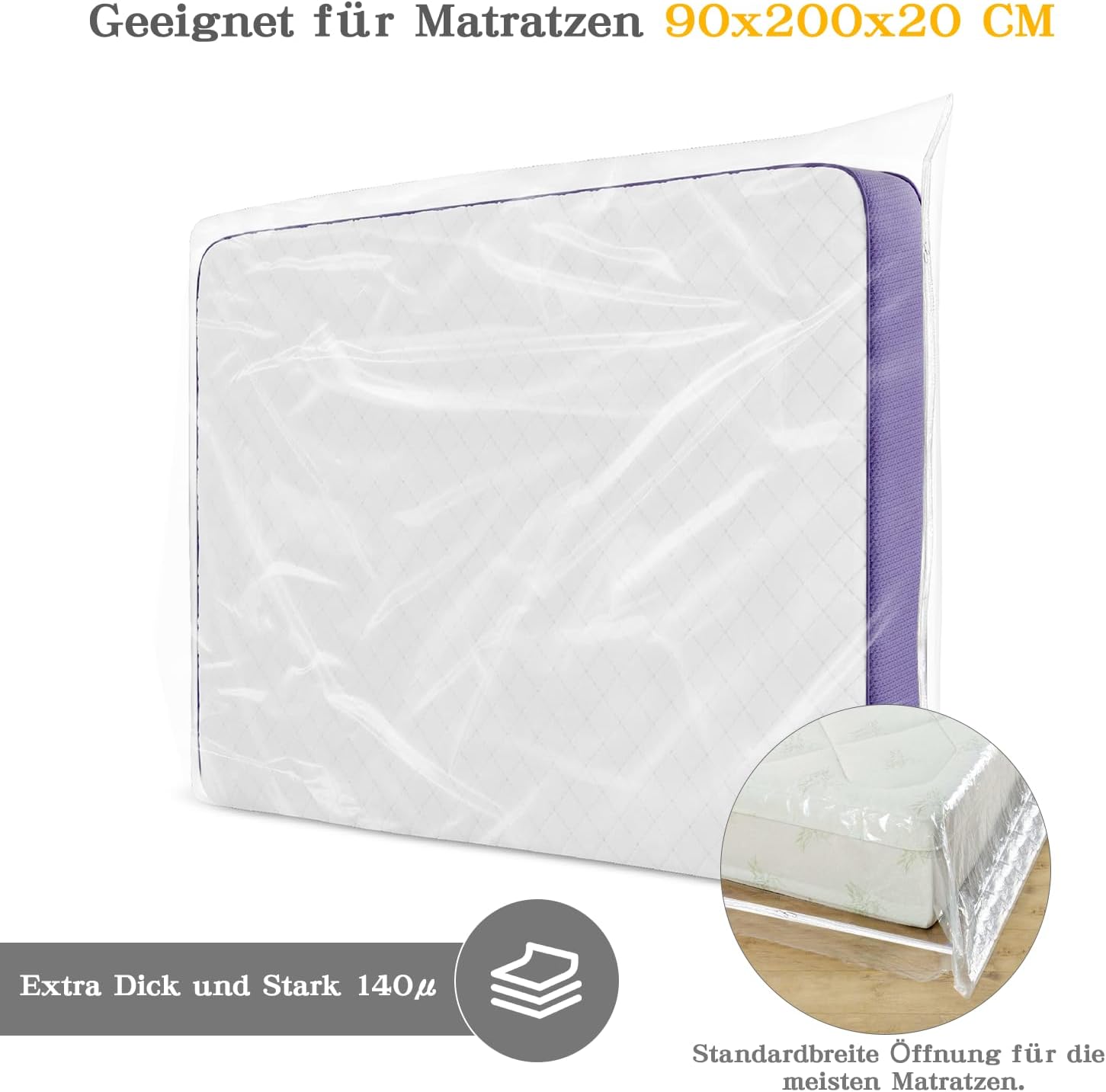 Sac de depozitare pentru saltele: 90 x 200 x 20 CM. Potrivit pentru majoritatea saltelelor de uz casnic; vă rugăm să măsurați înălțimea laterală a saltelei înainte de a cumpăra.