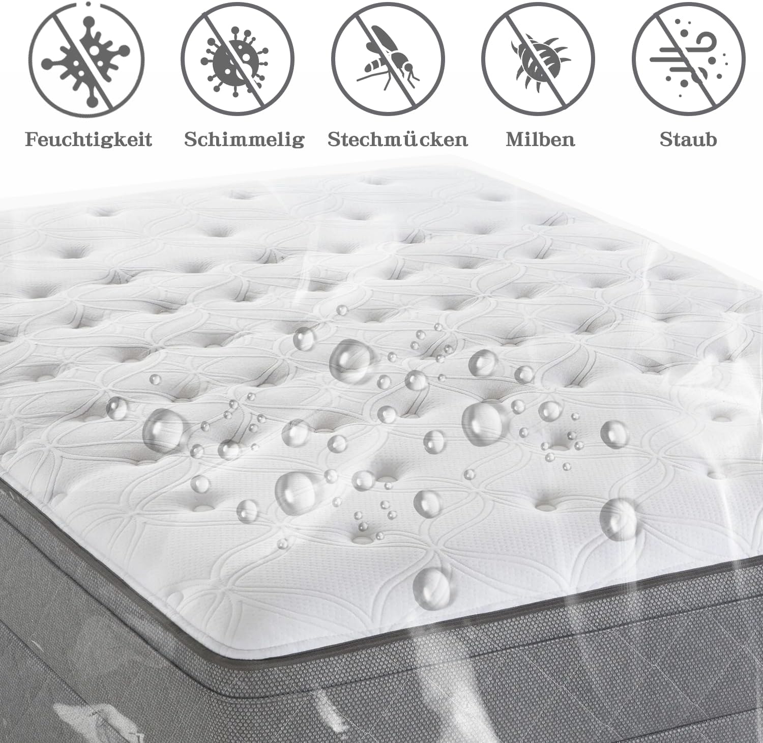 Utilizare versatilă: Când mutați și transportați, protectorul de saltea protejează salteaua de murdărie. Atunci când depozitați salteaua în camere utilitare și subsoluri, protectorul de saltea menține salteaua uscată și ordonată.